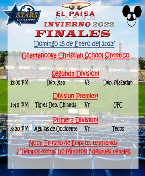 La Voz - Continuaron los partidos el día sábado 7 de enero en el complejo de fútbol Indoor conocido como Centro Deportivo Chattanooga, los equipos y aficionados esperando conocer al nuevo campeón del torneo de la liga sabatina asistieron este día para disfrutar de una gran final preparada para este día. Con la narración de Jorge Lavecchia y Frank Bartr se dio inicio al gran partido tan esperado por todos este día.