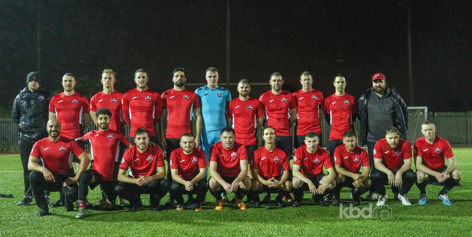 With both teams saturated through to the skin, the interval was a welcome break. Cara grabbed the initiative on the resumption and went in front in the 52 nd minute. Rory O’Connor’s long range freekick was only half cleared and the alert Abbott pounced to fire past Goulding. The Navy through everything at their opponents in the final twenty minutes but were caught by a lightening break in the 85 th minute. Another former Ramblers’ hero of the past Winnie Van Wimjen released Stuart Kiely who slotted in the decisive second.