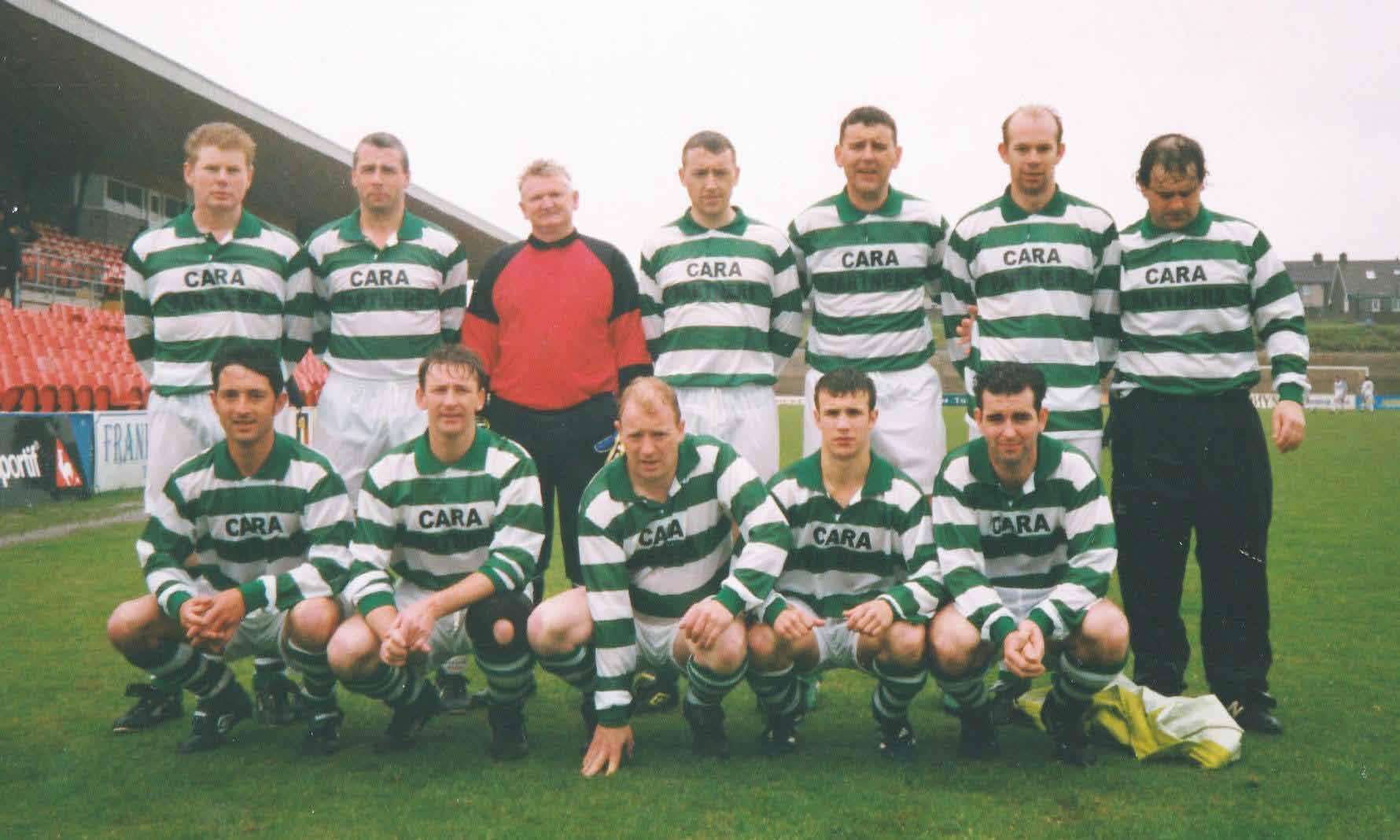 FOOT-NOTE : The destination of the premier division title in 1998/99 went down to the final fixture between Cara and the Navy at The Farm with Cara requiring a point to become champions for the first time as Naval’s big lead had being whittled away to such a degree that they went into the match two points behind their opponents. Having been beaten in the shield and Mooney Cup finals, the Navy gained sweet revenge by winning 2-1 on the night to dramatically capture their first of two top flight titles. After Cara’s Rory O’Connor and the Navy’s Mick Lannon exchanged first-half goals, Aidan O’Sullivan conjured up a late winner to deny Cara the treble at the death.