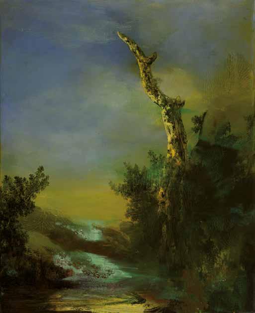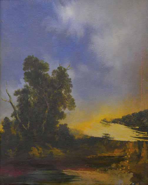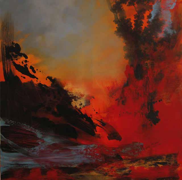 To mark his place in the contemporary canon, Rankle could be described as a landscape conceptualist, influenced as he is by idiosyncratic and purposefully provocative artists of an earlier generation such as Antoni Tàpies, Joseph Beuys and Anselm Kiefer. You may ask yourself what do the fine art antics of these luminaries have to do with Rankle’s classical landscapes. You will not see Rankle lugging an old mattress out of a skip to create a sculpture like Tàpies. You will not see him sitting in a gallery window smearing his head with honey like Beuys. You will not see him piling up the surfaces of his canvases with dead flowers and broken glass like Keifer. Rankle’s conceptual and neo-expressionist influences are deeper and more subtle than all that, but they are, none the less, marked in many ways by the work of these artists. Like these avant garde provocateurs his work unarguably strives to reflect the world by distorting it radically for emotional effect, to excite the emotions,