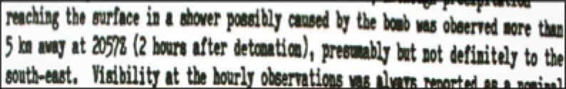 “precipitation” (rain) reached the surface in a shower possibly caused by Cumulonimbus from bomb..."