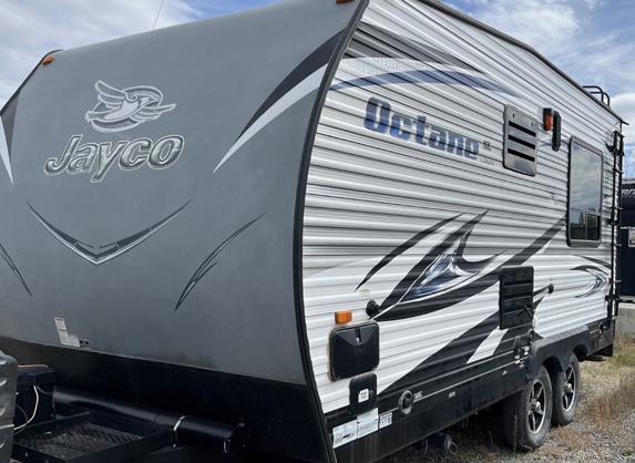 2016 JAYCO SL OCTANE 161 TOY HAULER: 20’. Fits a 54” 2-seat SBS. Happy Jac bed. 2 couches make into twin beds. Folding table. Camper cover. Distributing hitch at price. Electric jack. A/C. Solar panel. New 12 volt battery. Onboard 24 gl fuel tank. 2 burner stove. Convection/microwave. Bathroom. $17,500. 970-5962954.