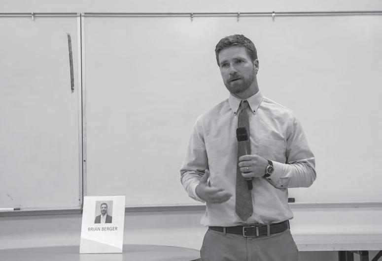 Brian Berger, the remaining candidate, attended the community event alone. Berger