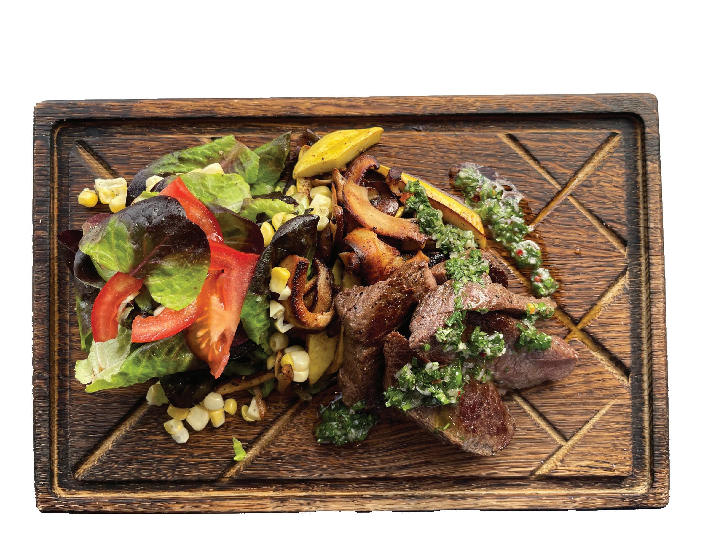 While the vegetables are roasting, combine Chimichurri ingredients in a medium bowl and set aside. In a small bowl, combine summer salad dressing ingredients and set aside. Cook the marinated elk backstrap over medium-high heat for 2.5 min on each side. Let rest for 3 minutes, then slice against the grain. Top elk medallions with Chimichurri. Add roasted vegetables to a large bowl with cobbed sweet corn and tomatoes. Toss with summer salad dressing and serve.