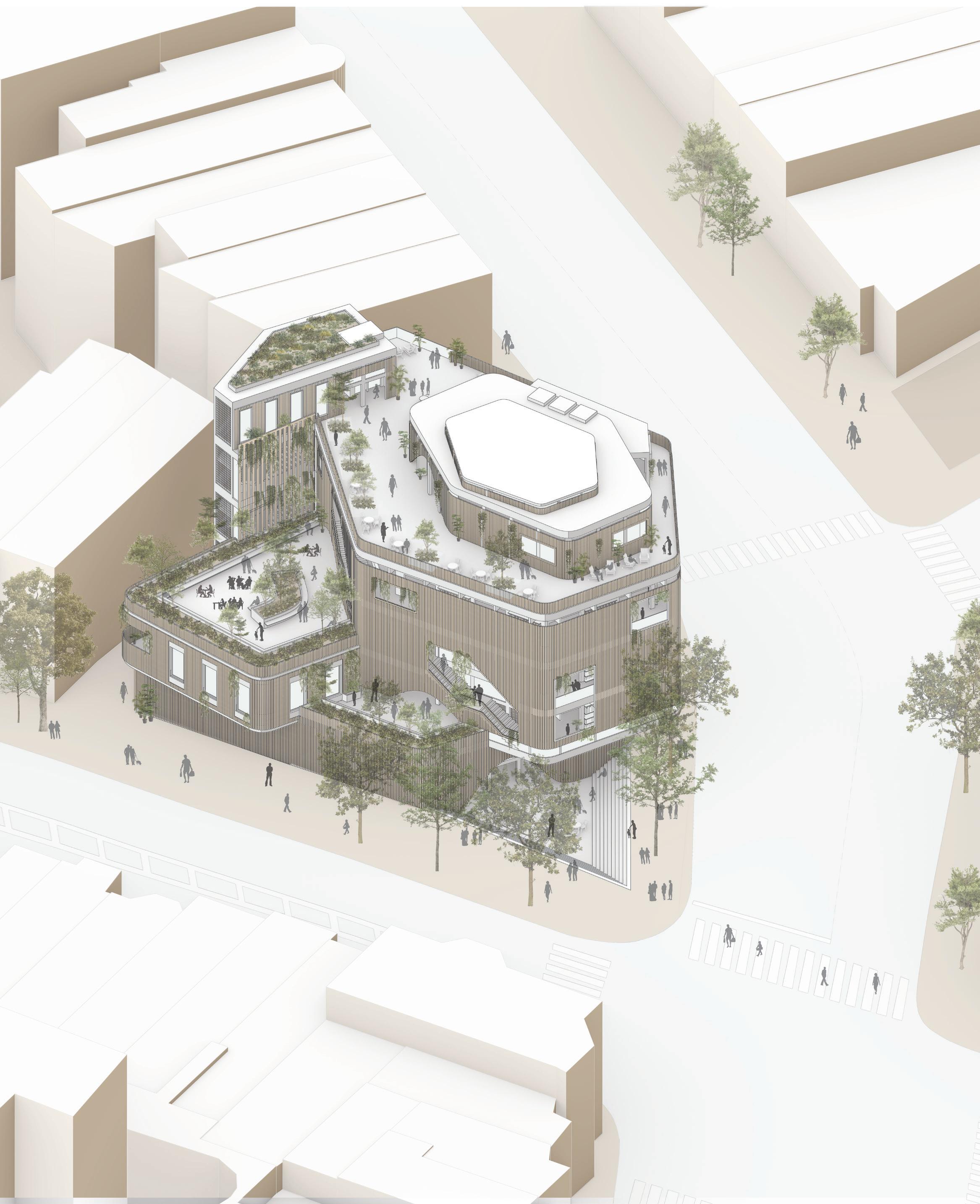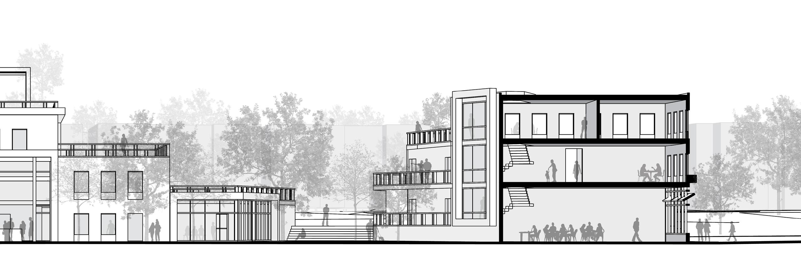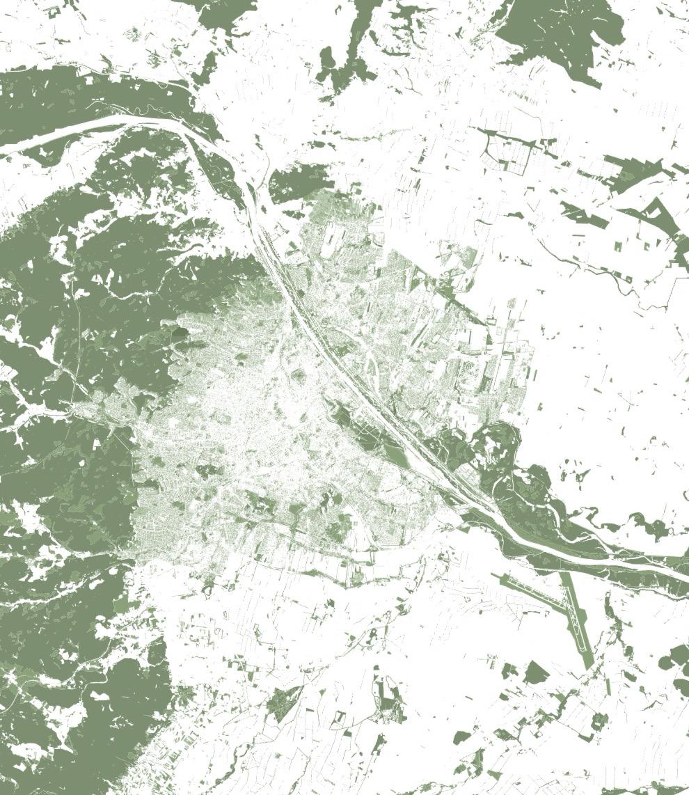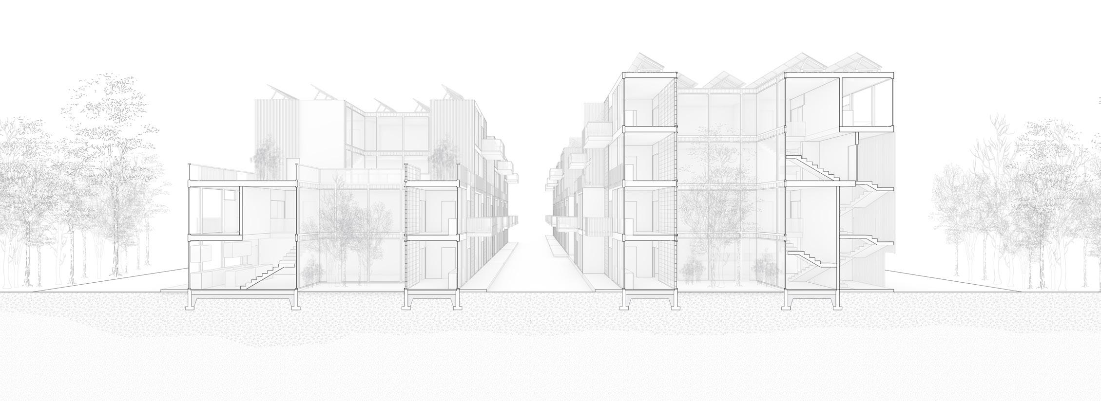 The overall urban strategy is driven by the creation of a forest belt to support nature-centered activities as well as an understanding of the urban grain from site-specific relationships and conditions.