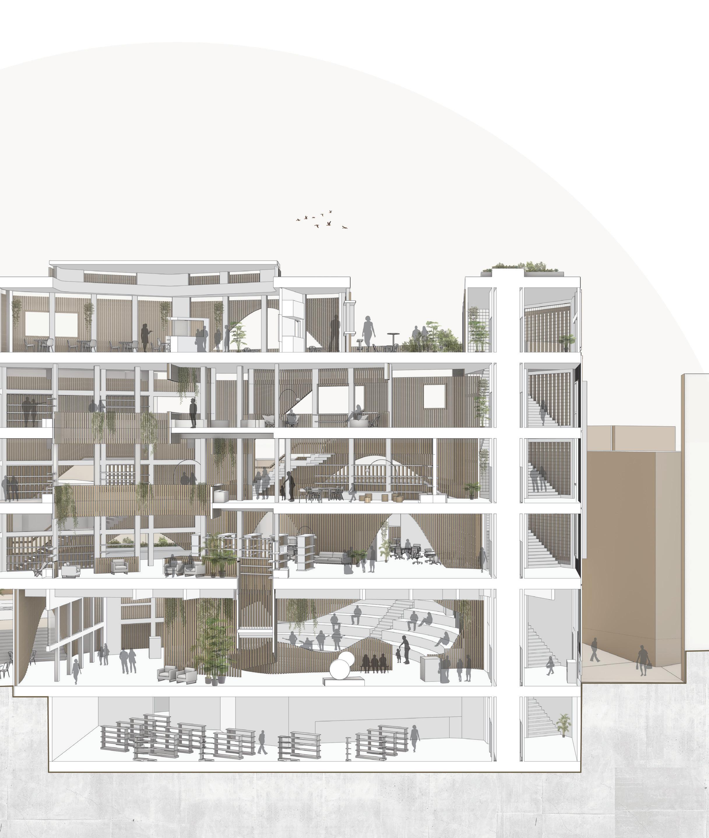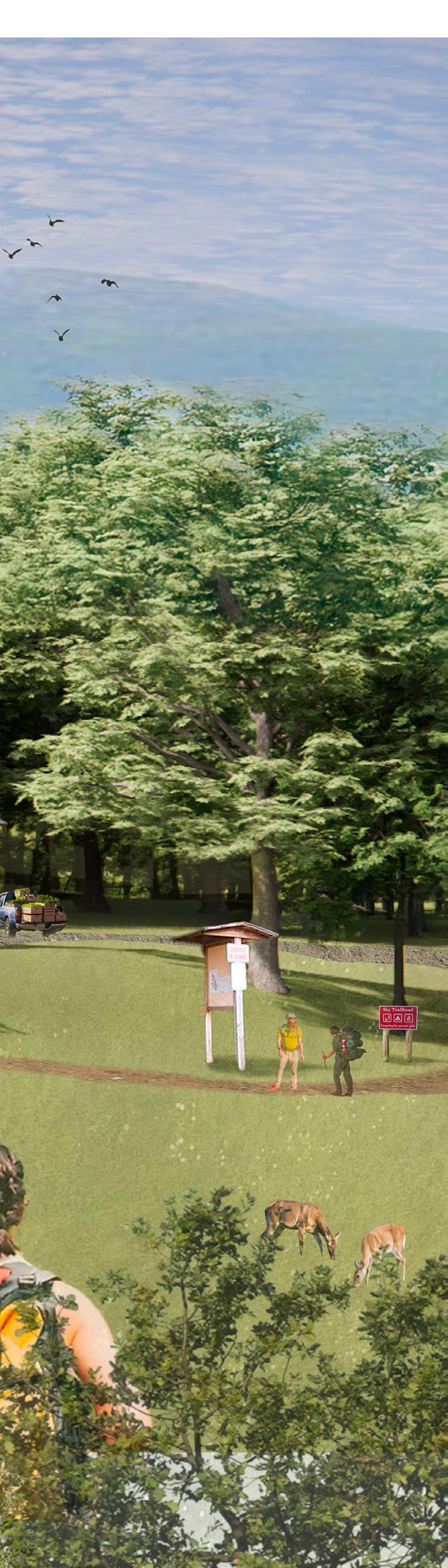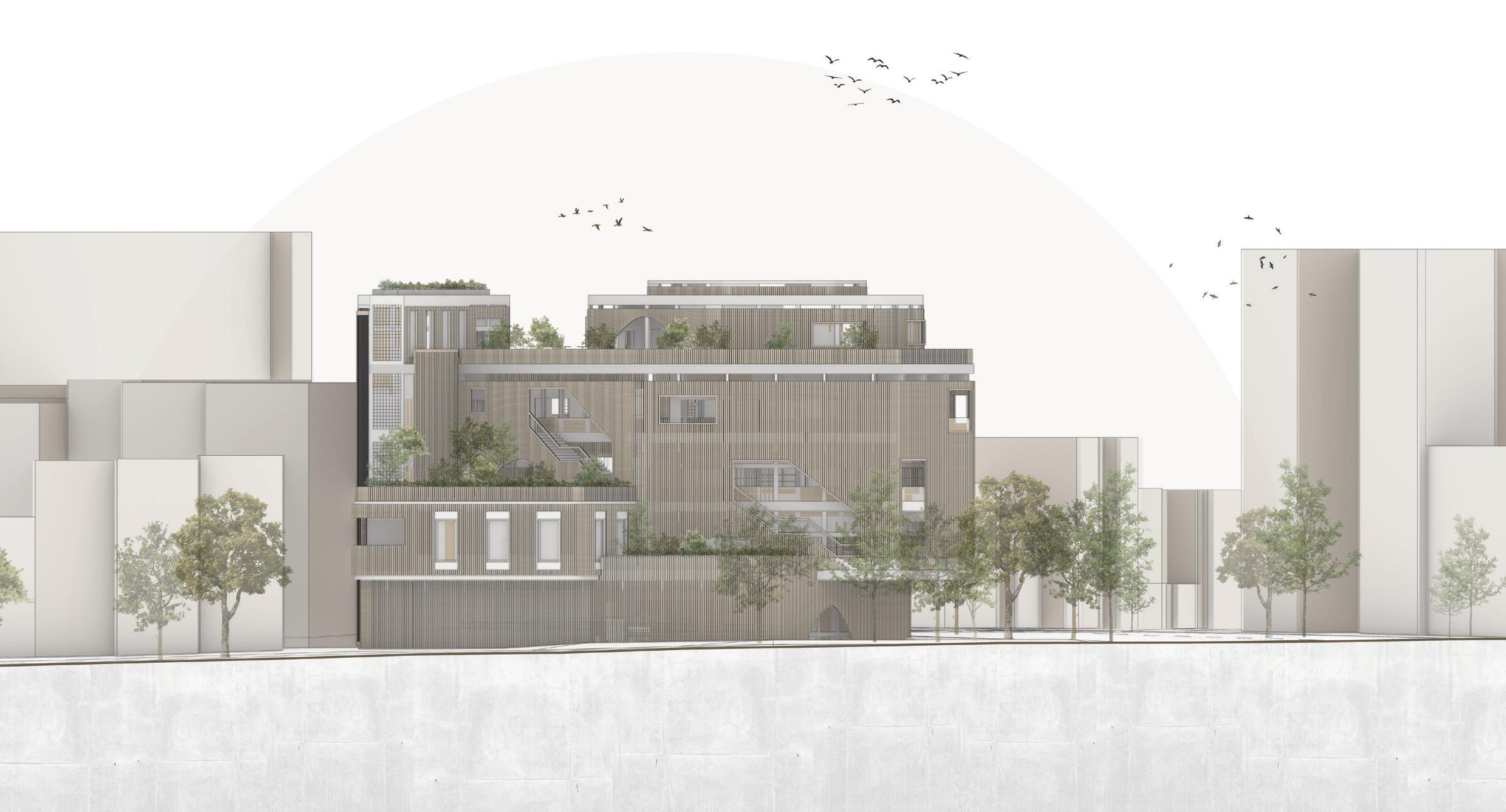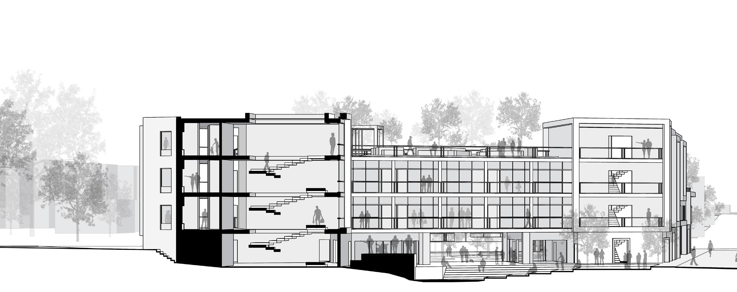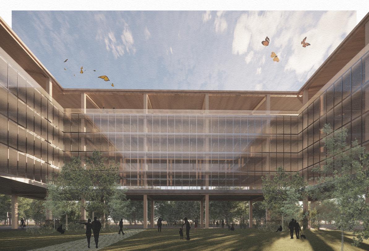 The overall urban strategy is driven by the creation of a forest belt to support nature-centered activities as well as an understanding of the urban grain from site-specific relationships and conditions.