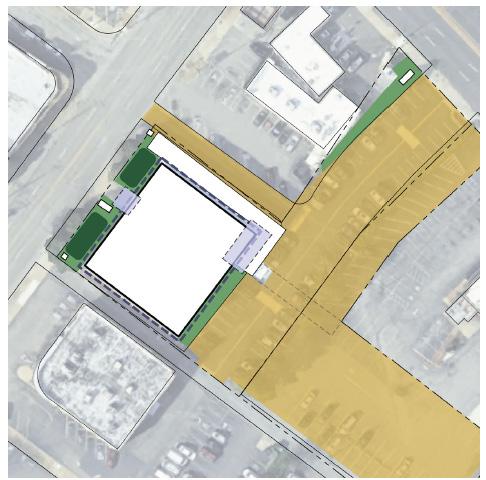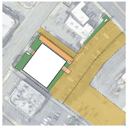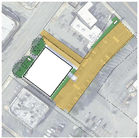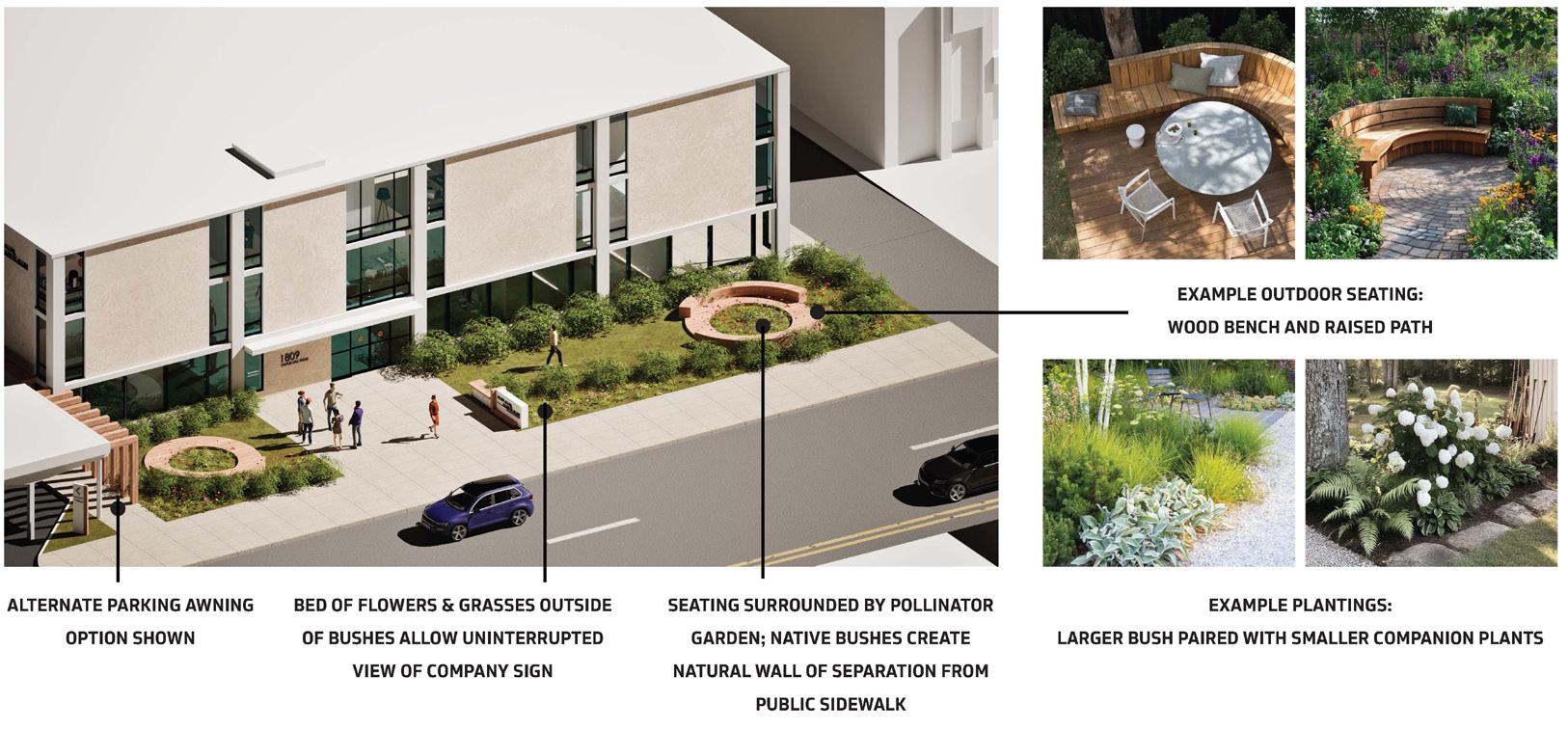 Landscape & Outdoor Seating: Proposed Design Option for a new public-facing green space in front of the law firm. Included as a part of final presentation.