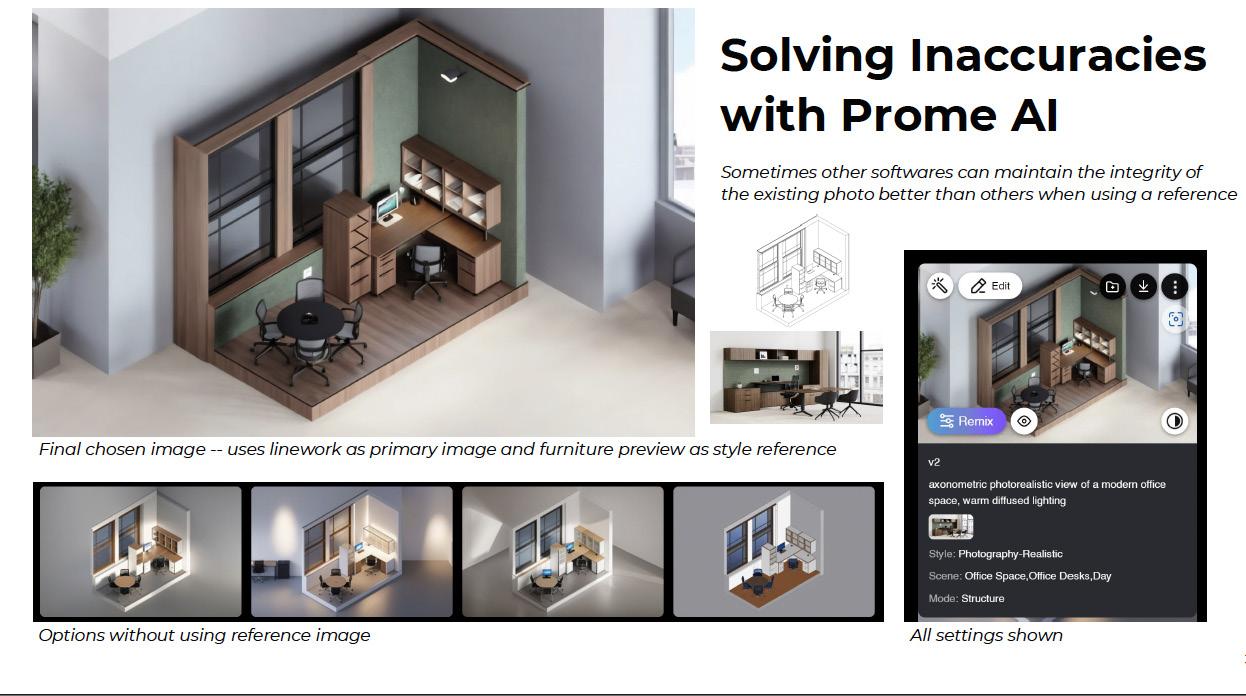 This series of slides is an exerpt from a greater presentation and comprehensive how-to-use guide from research on AI software in the field of architecture. The final slide deck was presented to the Richmond office during the internship and exists as a standing resource for designers to reference.