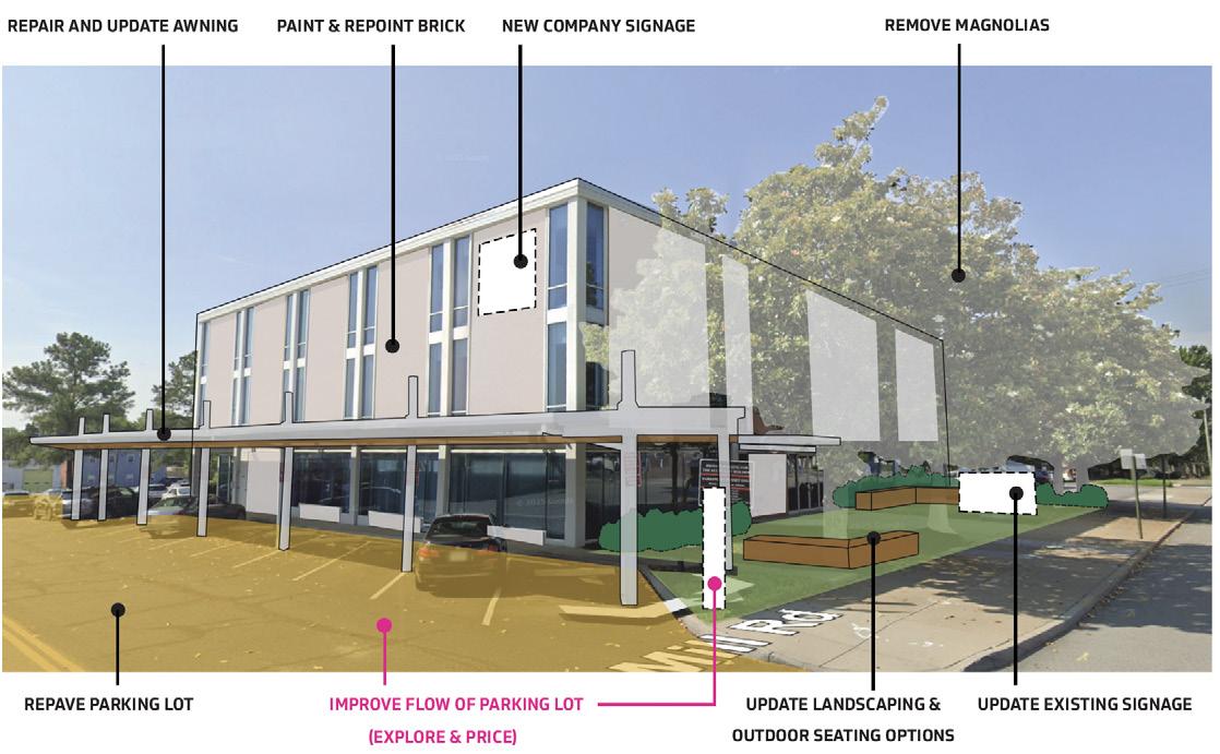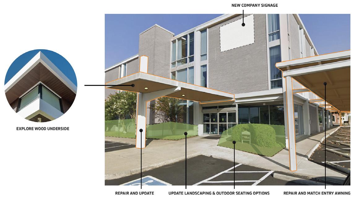 For this project, I worked closely and directly with a client, a local Richmond law firm, to determine the scope and design for an architectural update to their exterior of their main office building. The project included a series of presentations and renders made in collaboration with Mohamed Ali, a fellow designer in the office, who applied general materials and lighting to my 3D model in Twin Motion. I was responsible for all of the design work, diagrams, the digital model, post-production and editing, and the final presentation to the client, while recieving feedback and mentorship along the way from ENV’s design principal, Whitney Campbell.