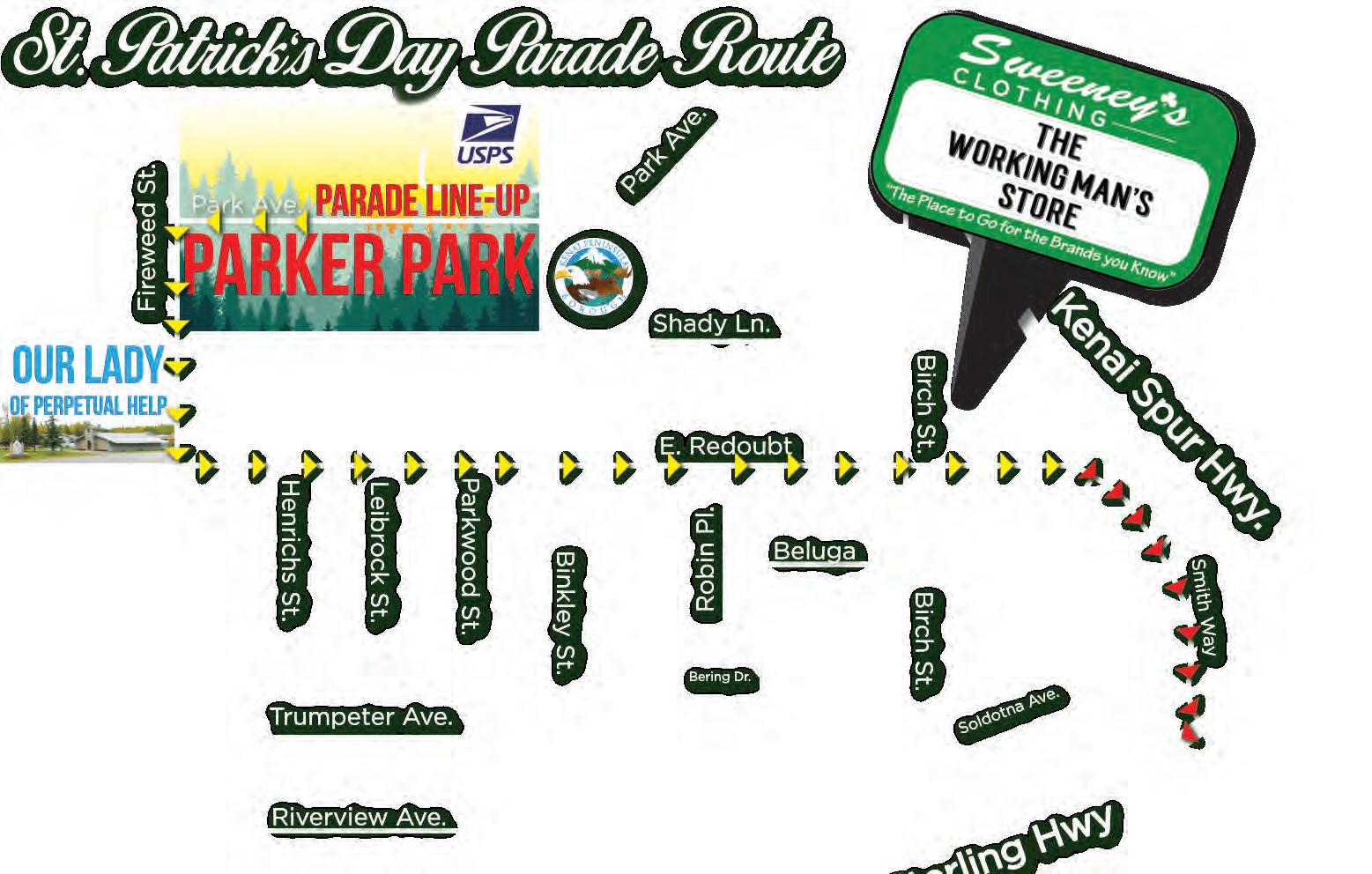 Monday March 17, 2025 4:00 pm lineup at Parker Park 4:30 pm Parade Start Time