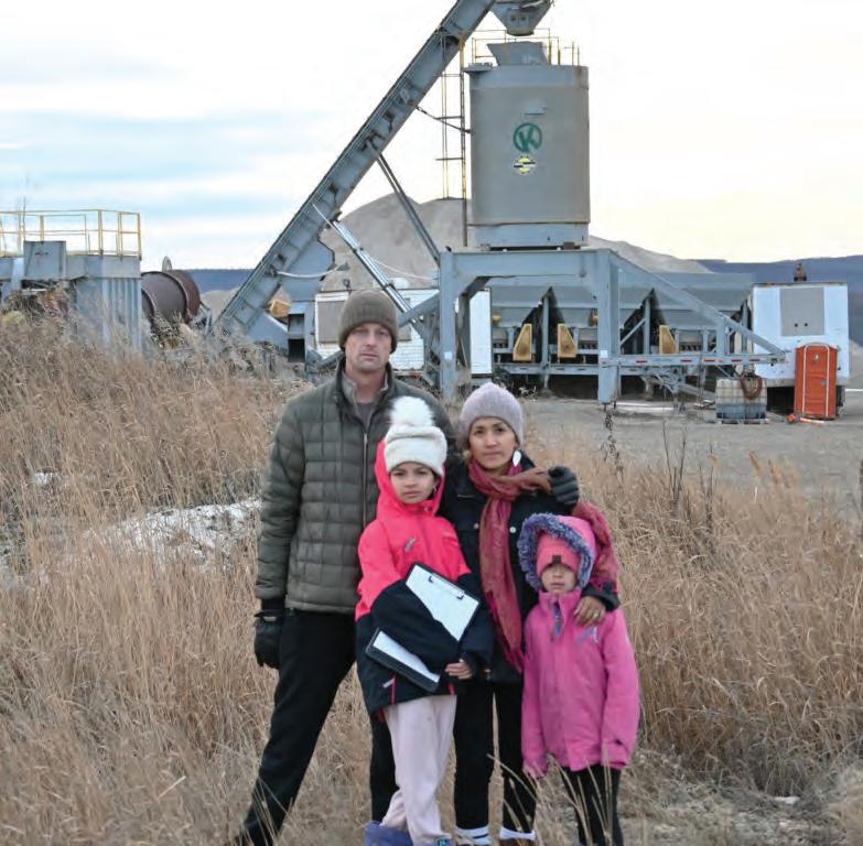 Cam Peters with wife, Joy, and daughters, Gabriela and Lara, stand in front of the asphalt plant they say is affecting their way of life.