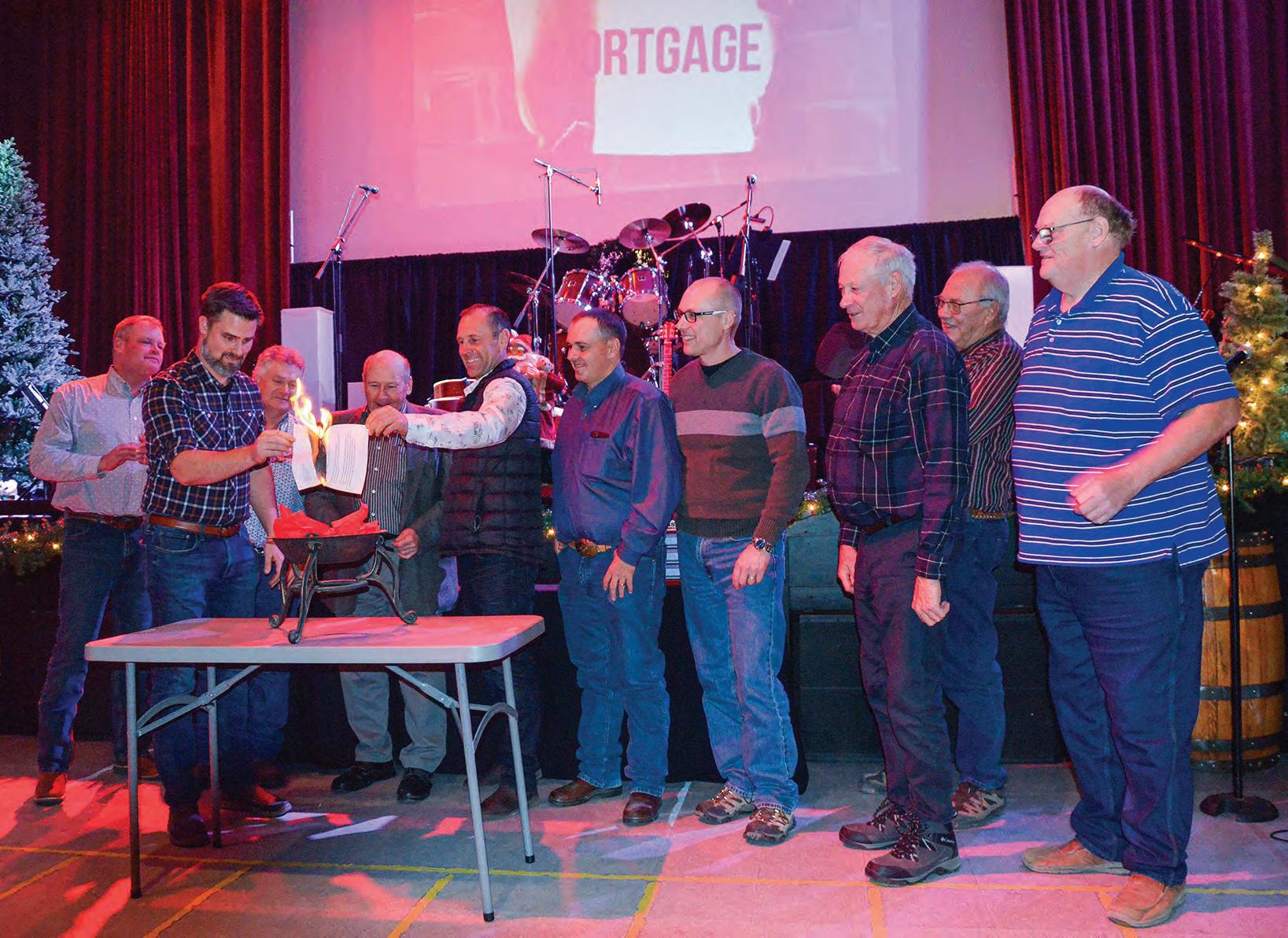 Last Tuesday’s well-attended celebration included speeches by member farmers and local dignitaries, who touched on the history of the institute and the scope of its work, and were treated to a roast beef dinner before the mortgage burning. The NDIT loaned just over $900,000 to the project, which was the last of the debt offi cially burned during the cere mony. Trust CEO Joel McKay eagerly counted down the days as the institute paid down the loan, never missing a payment, he said.