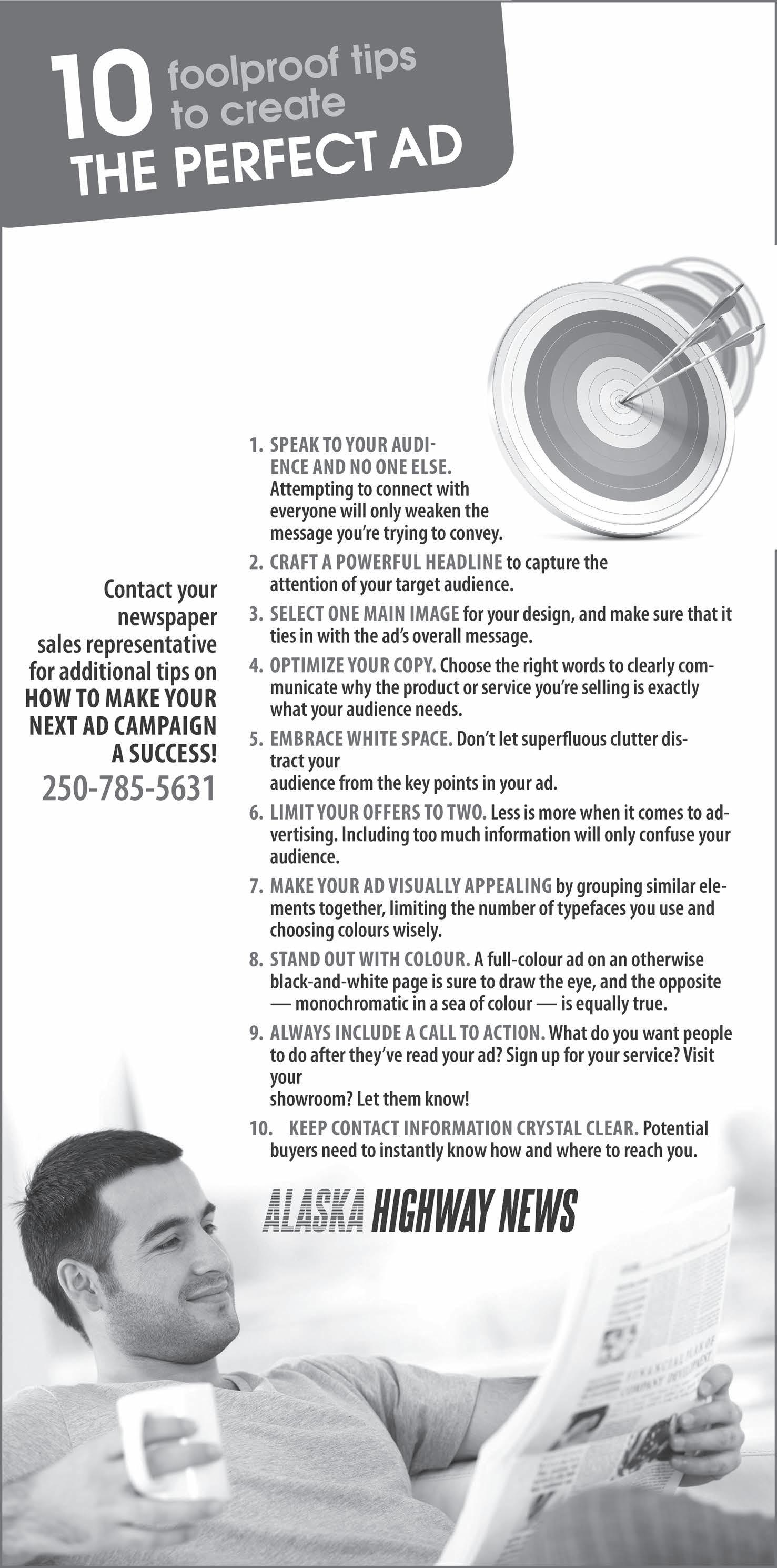 fl How do you learn as a family? Tell us #FamilyLiteracyDay Find more ways to learn at play as a family at www.FamilyLiteracyDay.ca Have a shapes scavenger hunt, taking turns finding shapes indoors and outdoors. Then make each shape with your body — kids and adults work together. LEARN AT PLAY, EVERY DAY. Target Your Clients! Let people know what your business offers. Ph: 250-785-5631 Fax: 250-785-3522 Here at the Alaska Highway News we have the finest graphics team to build your business a quality ad that can promote the item or idea that you want to sell. 250•785•5631 TO PLACE YOUR AD DIRECTORY BUSINESS COUNTRY PEACE AHN DENTAL SERVICES 2.737”x4.28” CASH FOR GOLD & SILVER! Paying Full Price for 999 Silver. Also Buying Coin Collections, Old Paper Money & Jewelry. Todd 250.864.3521 BUY/SELL/TRADE METAL ROOFING METAL SIDING AURORA STEEL & TRIM 1-250-794-6618 jwalter@aurorast.com www.versaframe.ca Delivery to site available with 3-4 day turn around. * 40 year warranty Rollformed to Custom Lengths Manufacturer Direct Need an installer? Contact us to get in touch with local installers/builders AGRICULTURAL COMMERCIAL RESIDENTIAL ROOFING/SIDING ADVERTISING & DESIGN EXPERTISE toput thefocus onyour business Contactustoday tospeakwithan adconsultant aboutthebestway tomaximizesales. 250•785•5631 alaskahighwaynews.ca BC Hydro will be hosting an open house to discuss Williston Reservoir operations. Due to dry conditions and low inflows, lower than average water levels are forecast on Williston Reservoir in