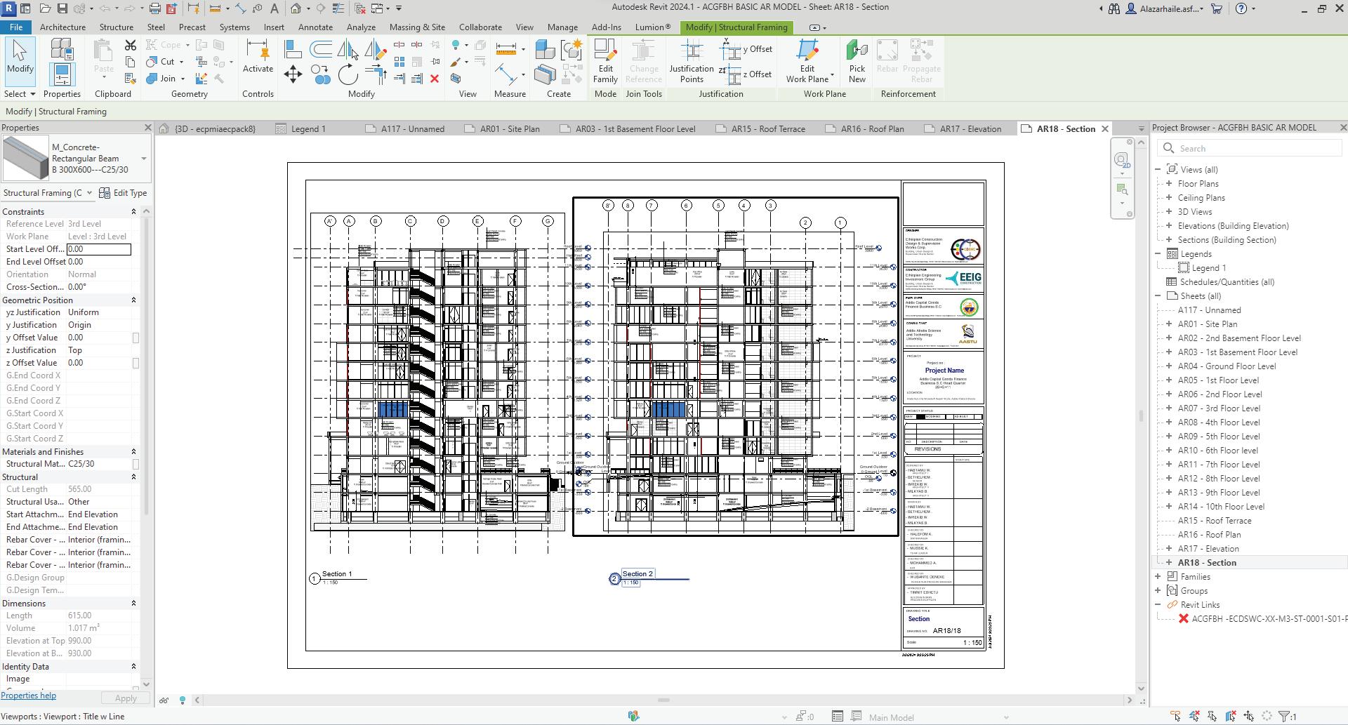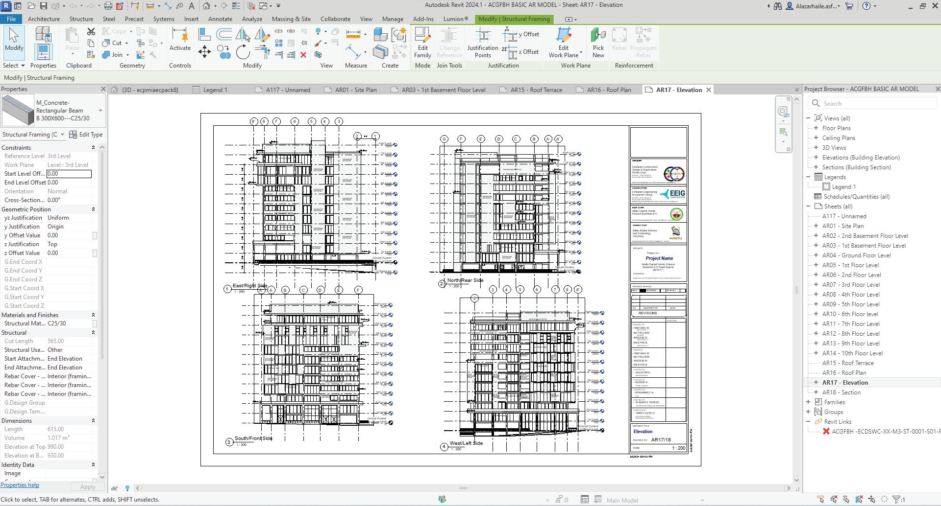 LEFT SIDE IMAGE: BIM MODELING ELEVATIONS SCREENSHOT [2023]. I RIGHT SIDE IMAGE: BIM MODELING SECTIONS SCREENSHOT [2023].
