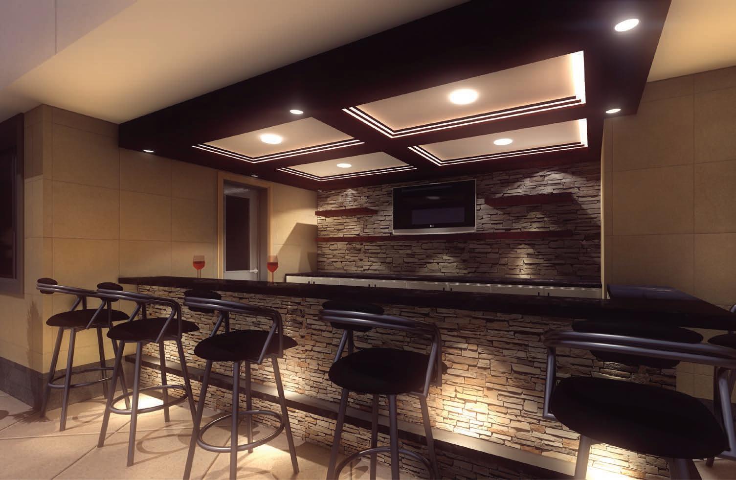 LEFT SIDE IMAGE: BAR EXTERIOR RENDER [2021]. I RIGHT SIDE IMAGE: LIVING ROOM INTERIOR DESIGN [2022].