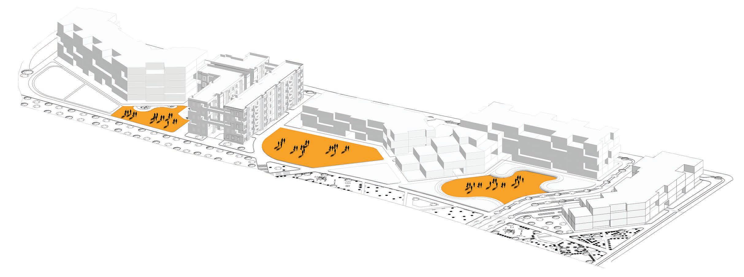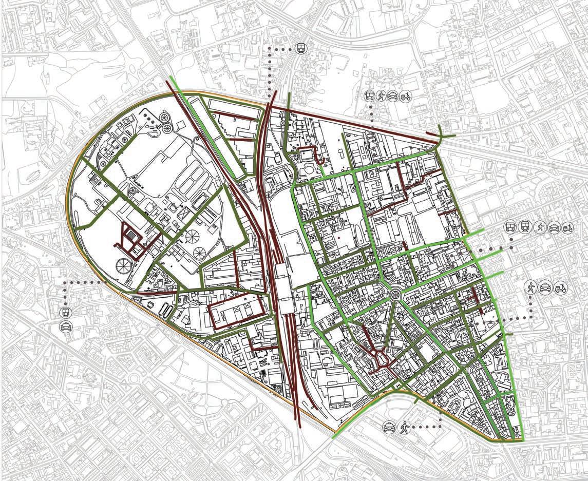The site has efficient connection on the east side with Tram, Bus and Bike paths and line. On the west side of the site there is less connection due to the existing organizations.