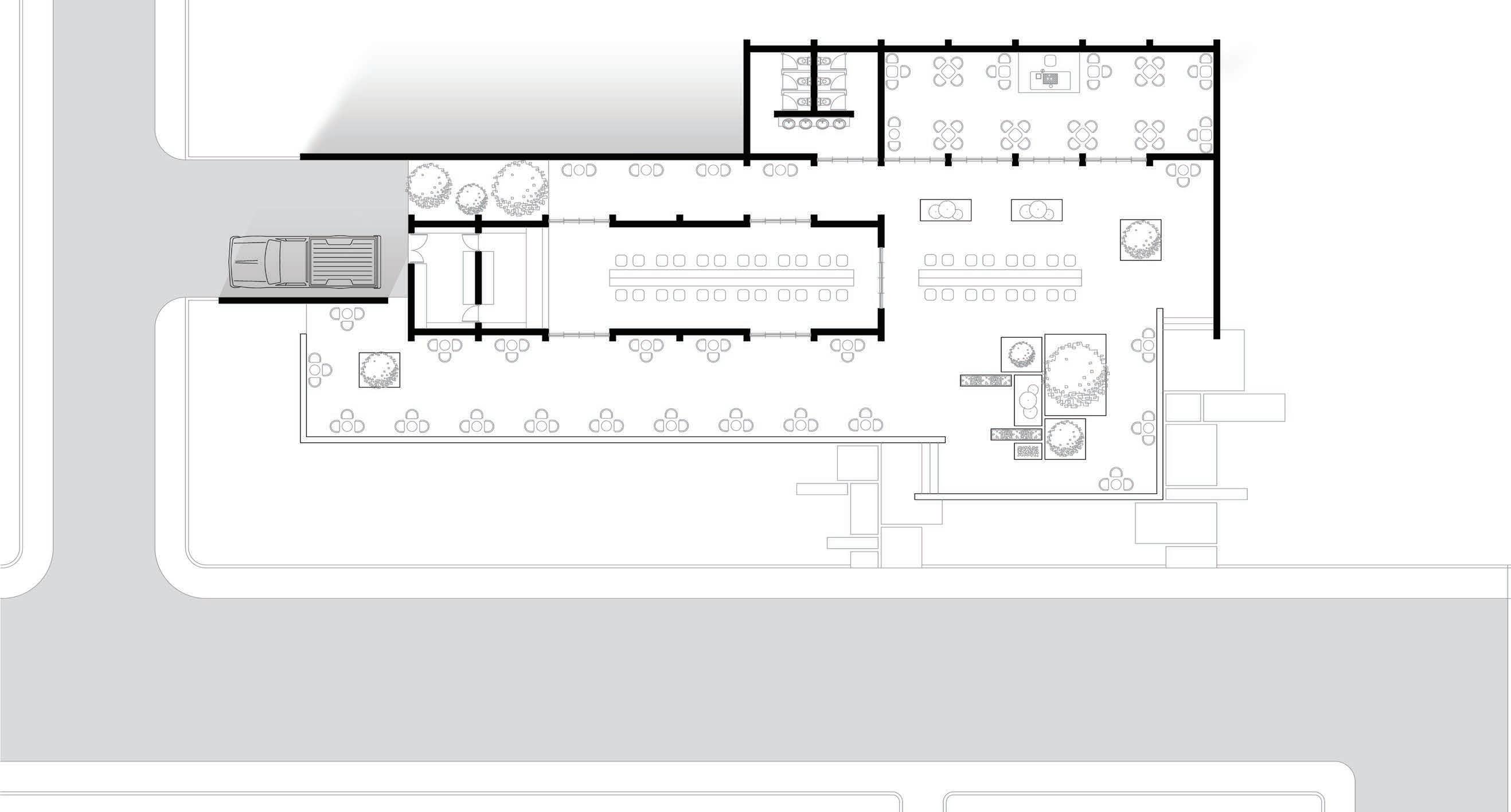 Interims of organization and allocation, the space is designed with consideration of both Ethiopian traditional coffee ceremony and westerns fast & take away coffee culture. Allocation of the both buildings have same form but arranged in parallel ways with little offset from each other.