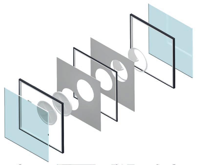 Rotaxsky is integration of advanced technologies and parametric design, shading mechanism offers a promising solution as adaptive facades, providing effective daylight control, glare reduction, and enhanced occupant comfort. The exploded perspective in Figure 12 provides a clear understanding of the relationship between the components, facilitating efficient construction and replication of the shading mechanism. The integration of this system within a high-rise unitized facade further ensures protection against external environmental factors by in closing the system inside the unitized facade glazing. As technology continues to advance and costs decrease, the adoption of adaptive facades like Rotaxsky is expected to become more widespread. mitred
