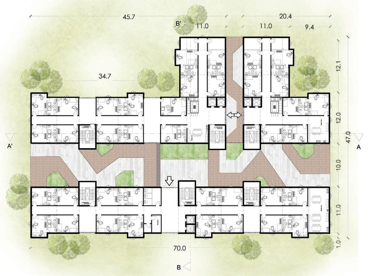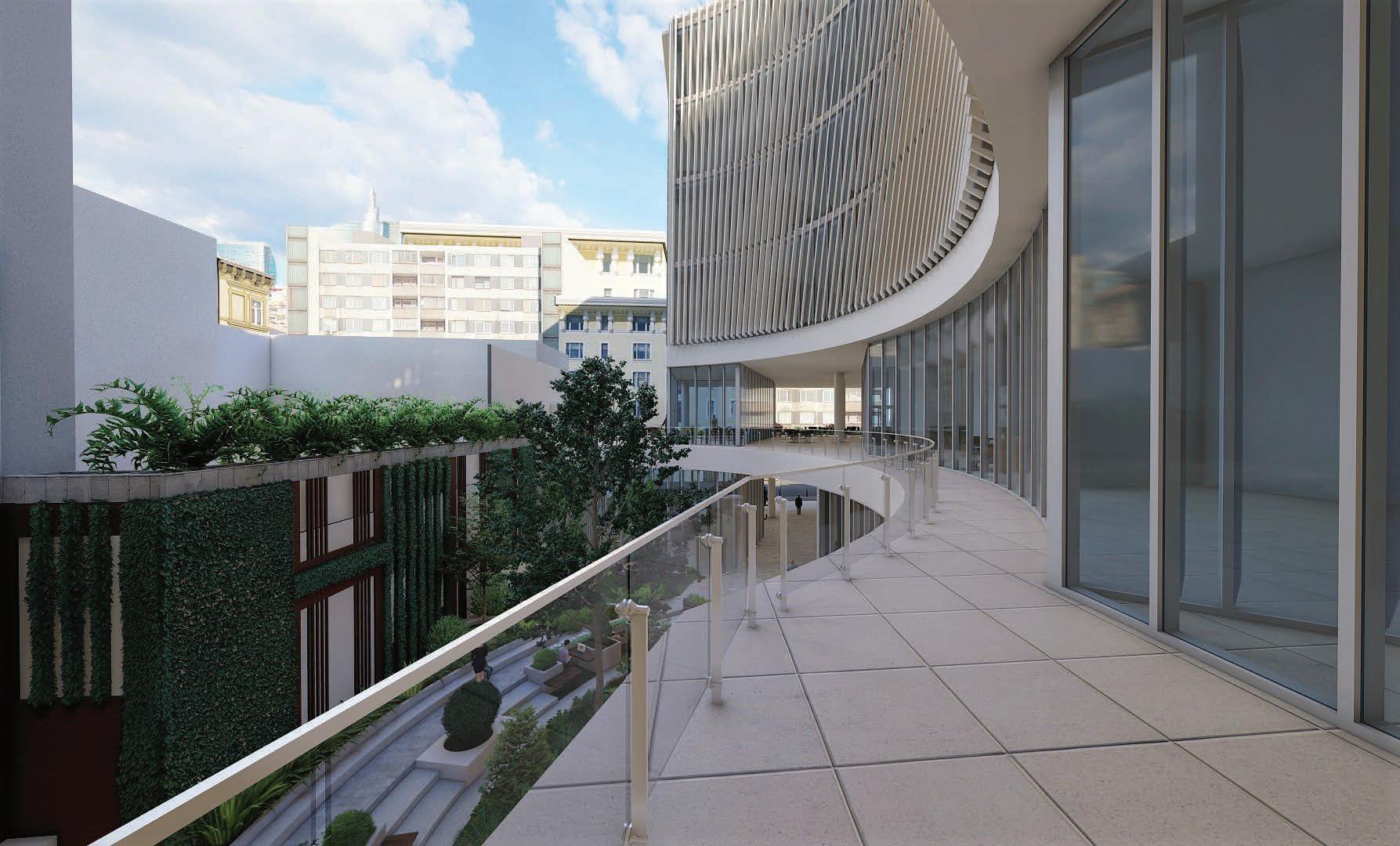 The design of office complex is designed In order to increase the permeability of the site, with creating a cross path from via Boscovice to Via Cappelini creating hidden garden space in between the path on ground floor courtyard like most buildings of the milan city.