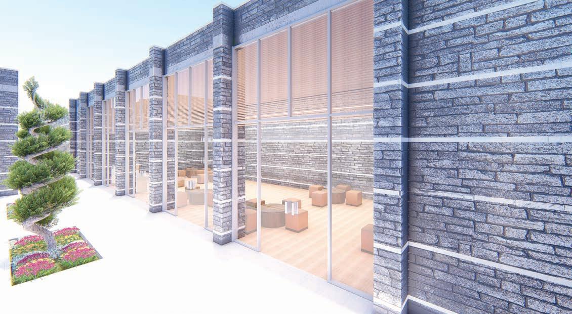 The architecture is contracted mostly from dark stone with white stone as strip to create an environment where certain elements become present through process of natural heating and cooling insulation system by controlling and managing thermal condition of the site and interior spaces. Placing both buildings close to each other give them the opportunity to shade one another and create shaded alleys between them. The physical interaction of dark stone and white stripe stone line will express cultural pattern of contextualize.