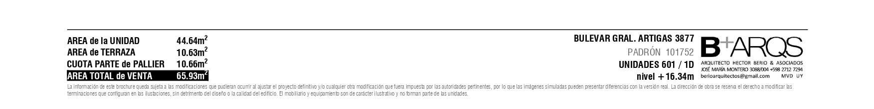 601 1dormitorio 44.64 m terraza 10.63 m N06 PATIO 602 1 dormitorio 37.34 m terraza 23.07 m 603 dormitorio 35.10 m terraza 4.41 m 604 monoambiente 27.53 m2 terraza 3.85 m 605 1 dormitorio 39.50 m2 terraza 3.88 m PALLIER PATIO GRAL. BV. ARTIGAS 0 2 4 6 8 10m ESCALA 1 3 5 7 9 ..\..\LOGO