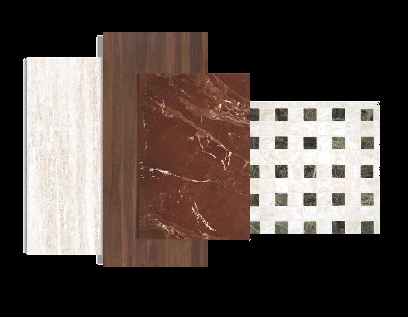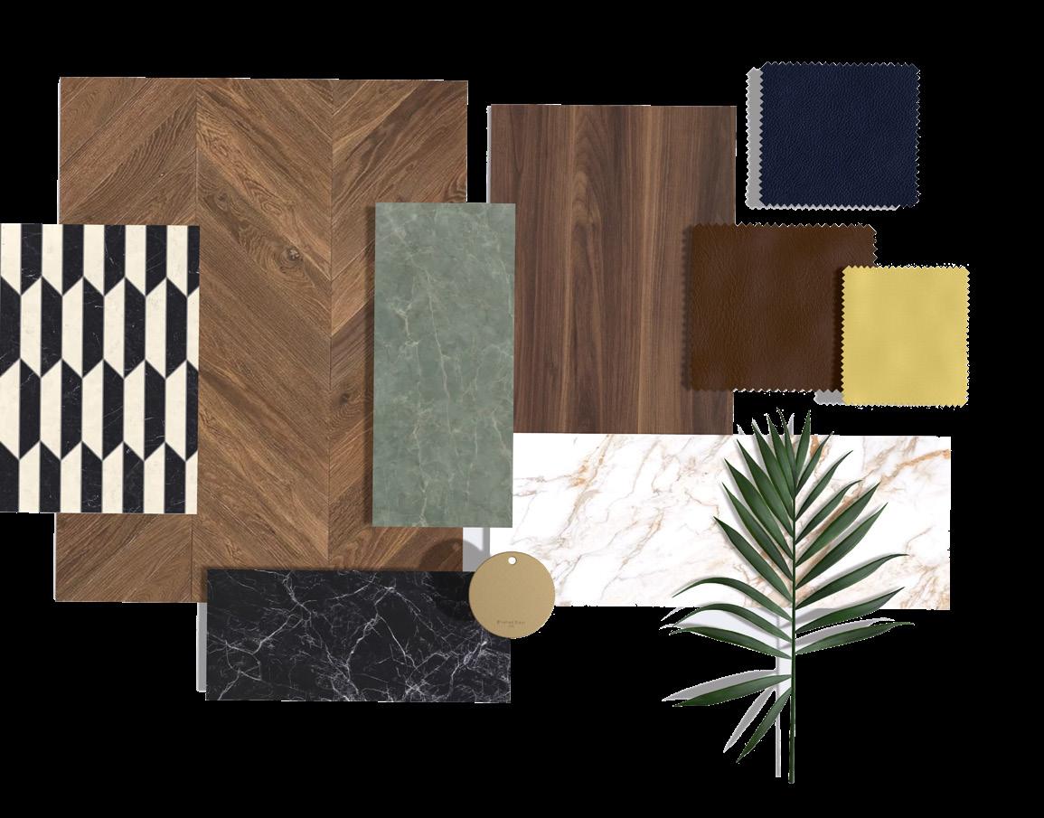 It incorporates organic forms, blending various materials and textures to achieve a bold, sophisticated, and elegant design. The chosen style and concept ensure coherence in the final design.