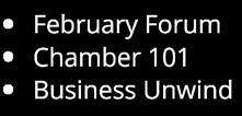 in hosting or have questions? in hosting or have questions? Contact Jorden at 541-926-1517 or email Contact Jorden at 541-926-1517 or email jparrish@albanychamber.com jparrish@albanychamber.com February 2nd February 2nd Calliber Home Loans Calliber Home Loans 1393 Clay St. SE, Suite B 97321 1393 Clay St. SE, Suite B 97321 February 16th February 16th ServPro of Linn & Benton Counties ServPro of Linn & Benton Counties 6835 NE Arnold Ave. 97330 6835 NE Arnold Ave. 97330 February 9th February 9th Timberwood Court Memory Care Timberwood Court Memory Care 2875 SE 14th Avenue 97322 2875 SE 14th Avenue 97322 February 23rd February 23rd KeyBank KeyBank 128 3rd Ave. SW 97321 128 3rd Ave. SW 97321 Tuesday, February 21st 11:30am - Board Meeting 4:00pm - Business Unwind Thursday, February 23rd 7:00am - Governmental Affairs 8:00am - Greeters 3:30pm - Chamber 101 Wednesday, February 22nd 11:30am - Forum Luncheon Friday, February 3rd 11:30am - Emerging Leaders