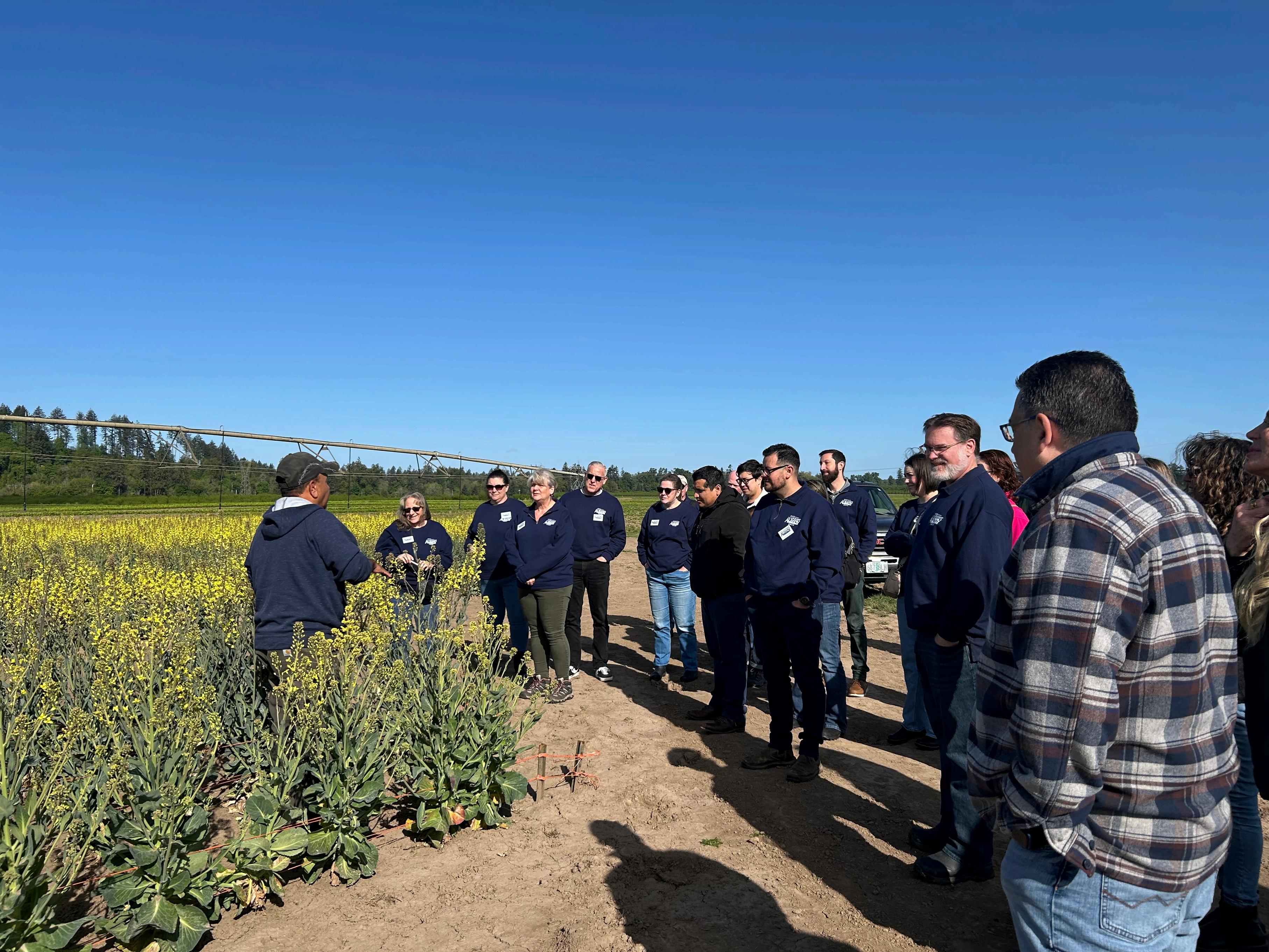 Skip Gray with Gray Farms Inc. and Oscar Lopez, talked to the class about the specialty crops they grow. The photo shows cabbage that is being grown to produce cabbage seed.