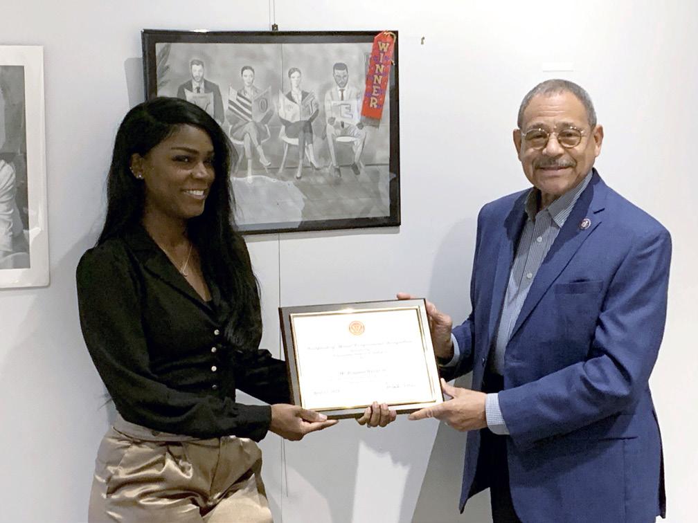 Congressman Sanford Bishop, D-Albany, announced the winners on April 14 at the Albany Museum of Art awards reception. The Dougherty Comprehensive High School junior and a parent will travel to Washington, D.C., for the June 26 national ceremony that recognizes the first-place winners of each congressional district that participated in the contest. Southwest Airlines provides two round-trip tickets, and the AMA will provide accommodations at a hotel near the event site.