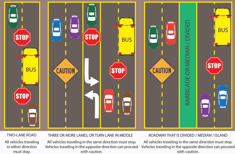 If you're driving behind a bus, allow a greater following distance than if you were driving behind a car. It will give you more time to stop once the yellow lights start flashing. It is illegal in all 50 states to pass a school bus that is stopped to load or unload children.