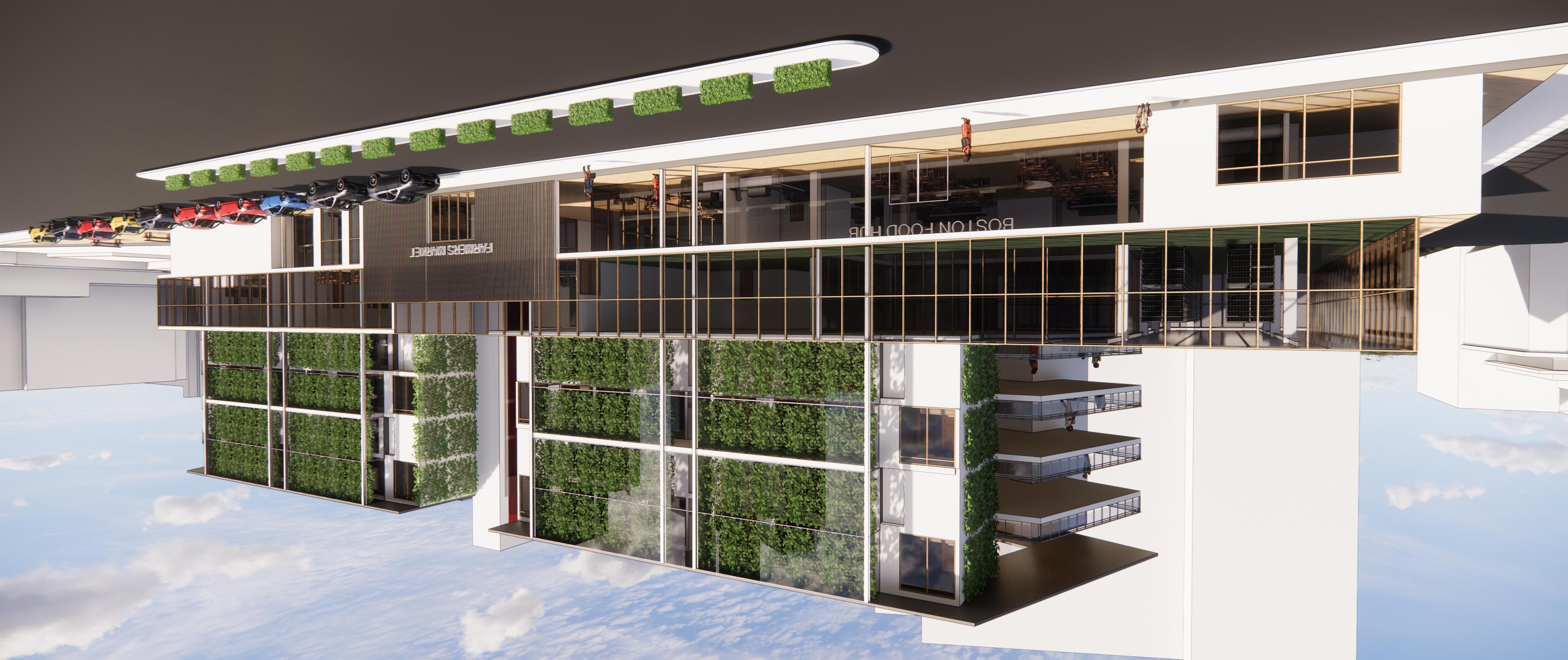 This project aims to create a new approach to co-housing, part cohousing, part Co-green house. As community it’s form by a combination of people that come together my building is a combination of Pods that combine together and create a new type of community and as they merge different space are created and in combination they create BOSTON AGORA. This proposal provides agricultural freedom to city residents. This project is in response to the growing population in Boston, to manage many people in the city. It will create housing, jobs , food and luxury living.