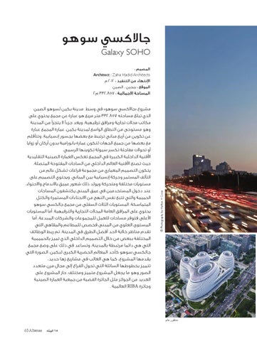 ﺟﺎﻻﻛﺴﻲ ﺳﻮﻫﻮ Galaxy SOHO اﻟﻤﺼﻤﻢ : Architect : Zaha Hadid Architects ا ﻧﺘﻬﺎء ﻣﻦ اﻟﺘﻨﻔﻴﺬ 2012 :م اﻟﻤﻮﻗﻊ :ﺑﻴﺠﻴﻦ ،اﻟﺼﻴﻦ