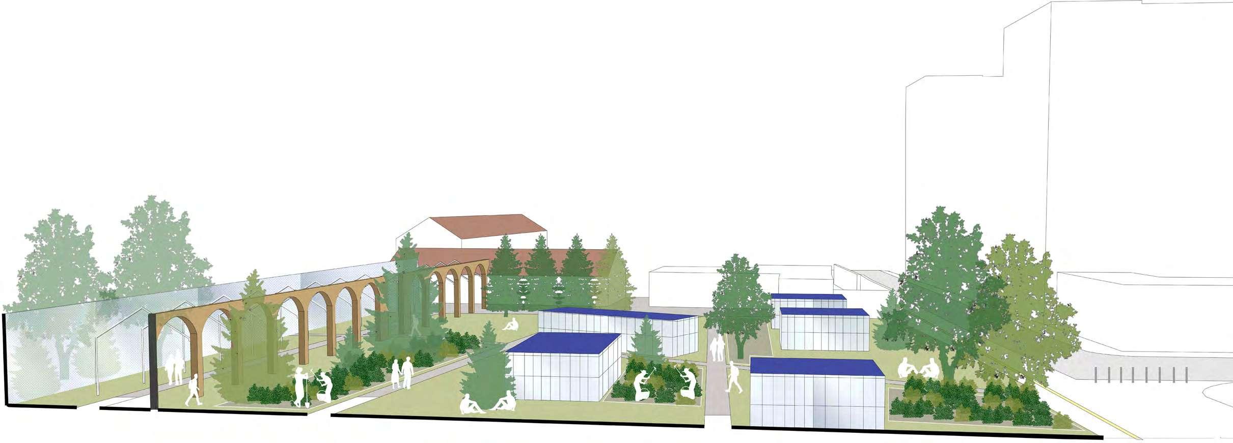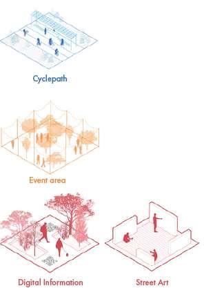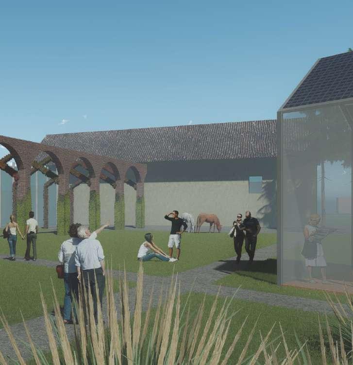 Cascina Rosa houses a parking lot and degrading old building structures, sharing its edges to the street and botanical garden it has a great potential for transformation. Through the intervention the parking lot is converted into an open urban space, also preserving the old building structures and facelifting the cascina.