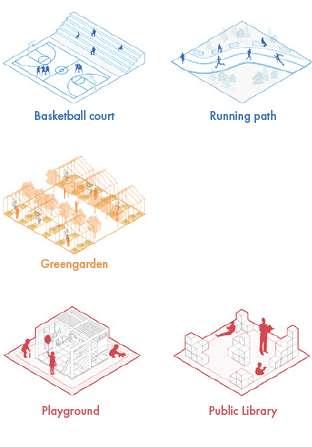 Single storey transparent cubicle buildings to serve as labs for students, enhancing the diversity of the place also solar panelled roofs providing clean energy. .