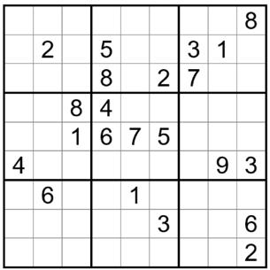 Sudoku Puzzles are games of patience, numbers and genius! The satisfaction of solving a challenging Sudoku Puzzle is one of the greatest accomplishments any sudoku game player can experience. The rules are simple, fill in the blanks so that each row, each column, and each of the nine 3x3 grids contain one instance of each of the numbers 1 through 9. Here is the puzzle. Good luck!