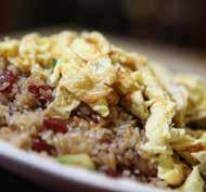 ● Ginisang Munggo, sautéed mung beans with garlic, tomatoes, and onions, which is perfect for rainy days.