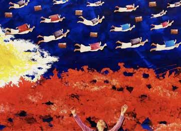 focuses on the Philippine diaspora, which she also felt was apt given the theme. “I was never formally trained as an artist,” Mila shares, “but I love painting – painting on paper, on rocks, paper mache, wood, any material which can be painted. And I already have these mixed media and acrylic paintings that fit the theme, so I thought, why not take a chance?