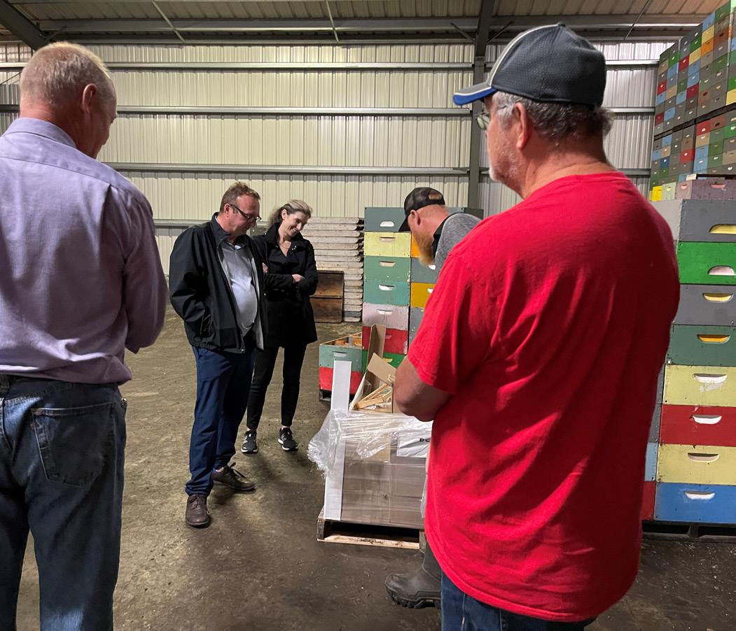 TomRosser,theAssistantDeputyMinisteroftheMarket and Industry Services Branch at Agriculture and AgriFood Canada (AAFC), along with three others from AAFC toured Tees Bees on August 24, 2023. ADM Rosser was the chair for the Bee Sustainability Working Group. He was very interested in learning more about beekeeping in Alberta and discussing some of the issues and recommendations raised during the Bees SustainabilityWorkingGroupmeetings.