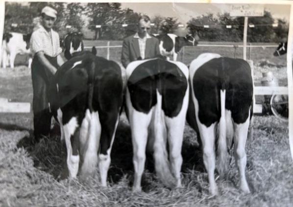 Johan’s grandfather (left) with his Friesian-Holsteins, In 1961 he was placed first in the category “Group of 3”