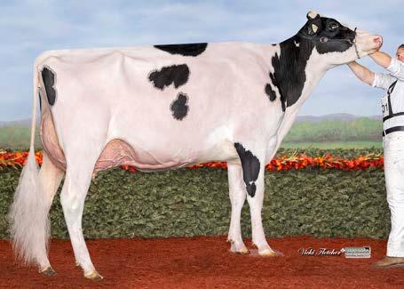 genetics with 130 new VG 2 year olds and 97 first time excellent cows. The production numbers are also staggering with 51 cows with over 100,000 kg of milk. Leading the way by winning 4 of the production classes was Chubanna Holsteins and that earned them the trophy of Central Alberta Breeder of the Year.