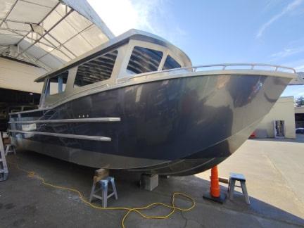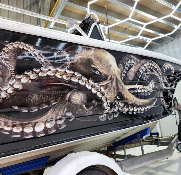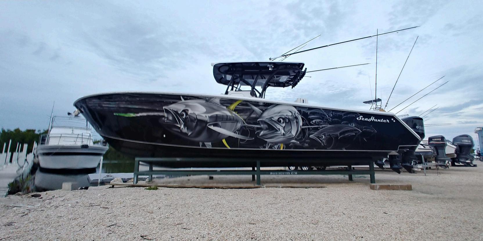 A vinyl film is applied over your boat’s exterior. You can customize colors, textures, and designs —from matte to chrome. It’s cheaper and faster than repainting.