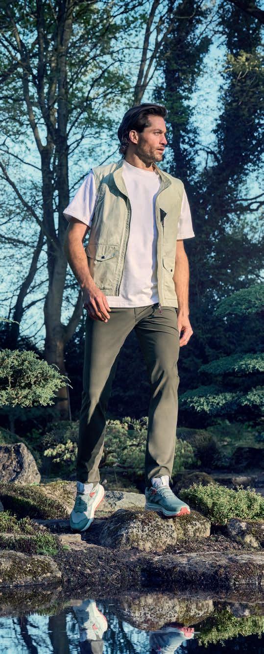 Sie sehen nicht nur umwerfend gut aus – eine Vielzahl an intelligenten Funktionen und raffinierten technischen Features helfen auch dabei, den Alltag noch smarter und stylischer zu meistern. Die Pants unserer Performance-Serie haben sich seit ihrer Einführung vor eineinhalb Jahren zu echten Highlights im ALBERTO-Sortiment entwickelt. Ganz neu: das Modell ‚Mover‘, eine Normal Waist Slack aus hochelastischem, wasserabweisendem, atmungsaktivem und schnell trocknendem Revolutional® mit schmal geschnittenen Beinpartien, Tunnelzug und kontrastfarbenen Bändern. Ebenfalls ganz frisch im Programm ist die ‚Clark‘. Gefertigt aus ultraleichtem, wasserabweisendem, schnell trocknendem, temperaturregulierendem und atmungsaktivem Coolmax® Superlight Hightech-Gewebe Made in Japan und ausgestattet mit aufgesetzten Pattentaschen mit Mesh-Innenfutter, bietet die sportliche Wide Fit dank Knöpfen und eingefassten Bändern im Kniebereich sowie Gummizügen und Stellern an den Beinenden die Möglichkeit, Beinlänge und -weite individuell einzustellen.