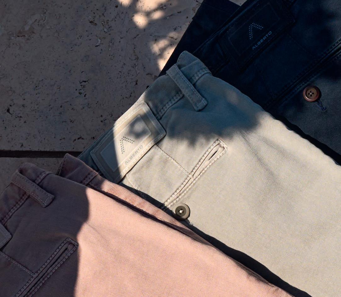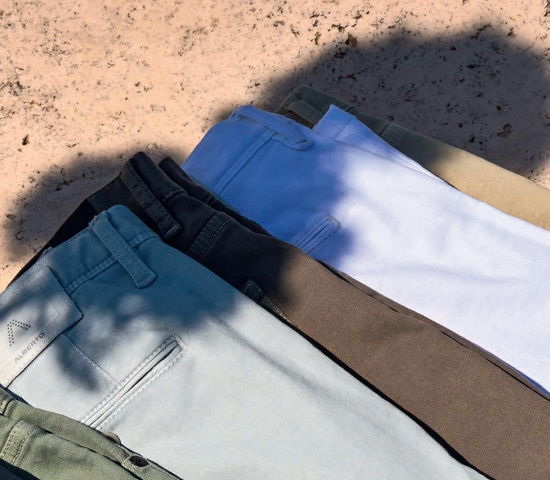 Die Performance Pants haben sich in den vergangenen Saisons zu einer echten High Number im ALBERTO-Programm gemausert. Und das völlig zu Recht, garantieren sie doch dank raffi nierter Tech-Features und innovativer, speziell entwickelter Funktionsstoffe sichere Lösungen für alle Herausforderungen, denen sich eine Hose auf Reisen und im aktiven Alltag stellen muss. Jedes Modell ist knitterarm, atmungsaktiv, temperaturausgleichend, wasserabweisend, elastisch, farb- und lichtecht.