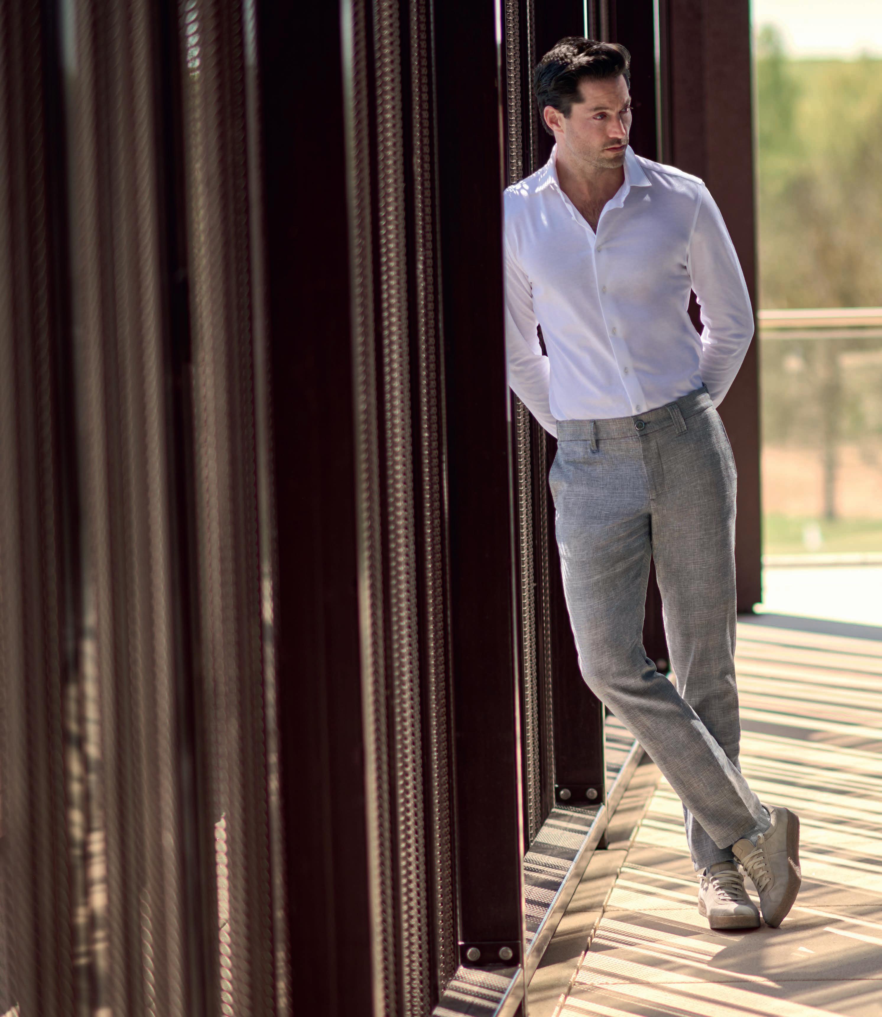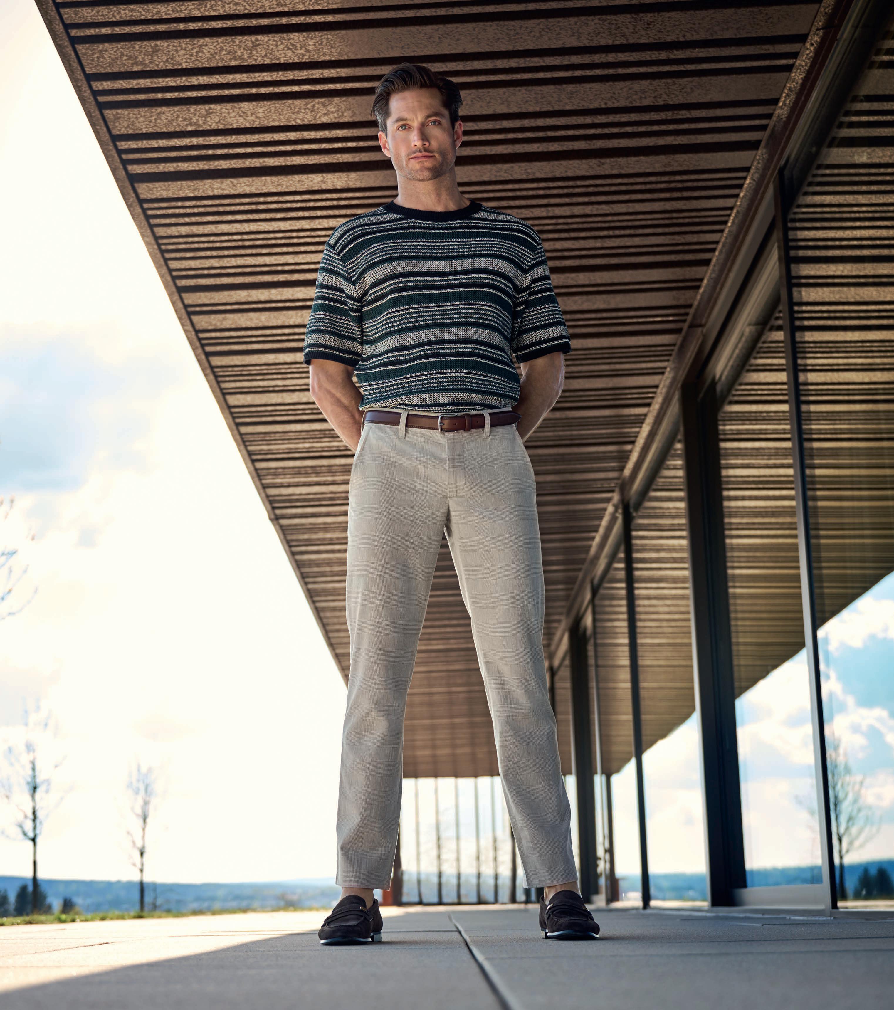 Worn casually with a hoodie and trainers or elegantly with a shirt and loafers, lightweight jersey pants are hard to beat when it comes to combining style and comfort in hot summers. ALBERTO offers two highly elastic styles, ‘Smart Jersey’ and ‘Jersey Check’, which add accents with graphic prints and check patterns in soft beige, light blue and sand tones.