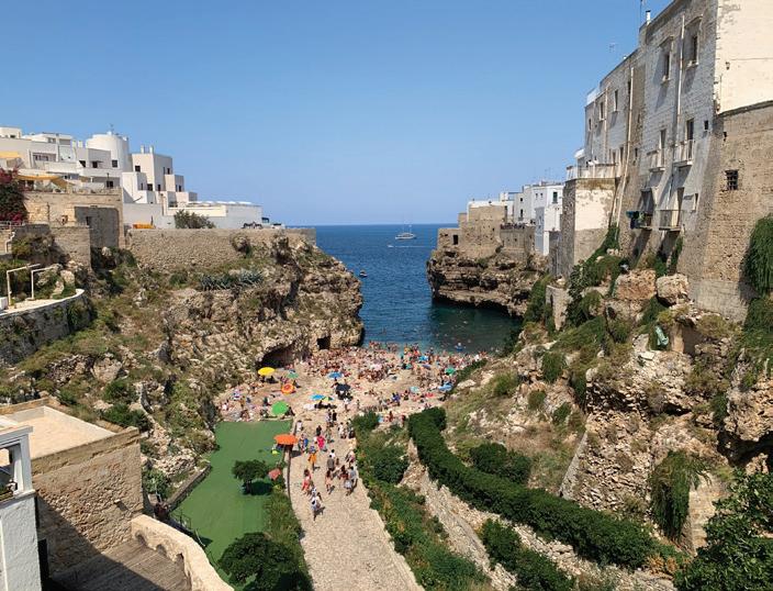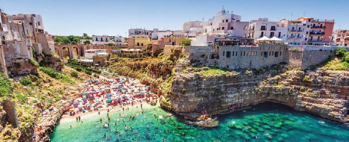Com vista para o mar, suspensa num esporão de rocha, Polignano a Mare, é uma das mais belas vilas de Itália. O mérito não advém apenas do mar, mas também do seu centro histórico, com as casas de pedra, as lógias, o labirinto de ruas e os terraços de onde se pode admirar o mar. É a terra natal de Domenico Modugno - encontrará uma estátua do cantor ao lado de uma escadaria que conduz a um belo terraço, de onde se avista o ponto mais conhecido da vila: a Lâmina de Monachille.