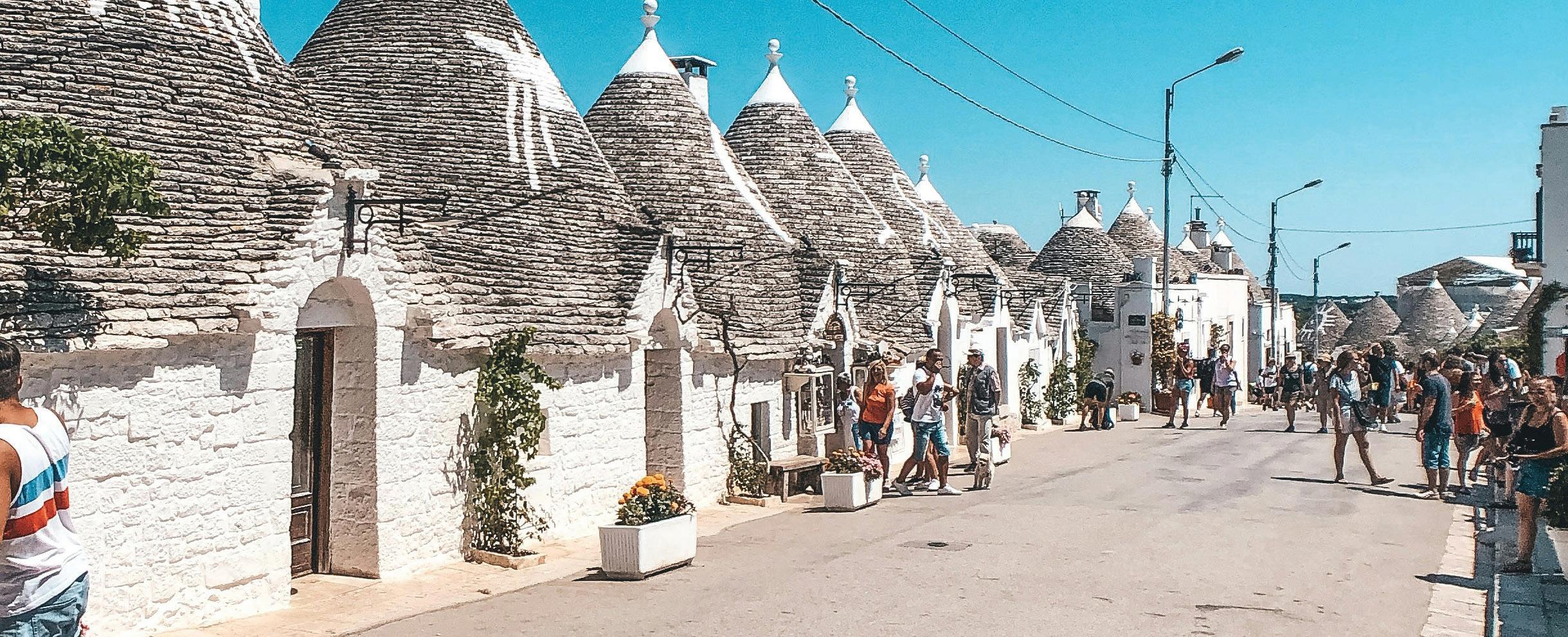 Em pleno Vale D’Itria, Alberobello, pode ser considerada como a “capital” dos trulli! É uma pequena vila que ganhou a sua notoriedade pelas centenas de trulli que aqui se podem visitar ou mesmo pernoitar! Muitos trulli são agora usados como restaurantes, pequenos hotéis de charme, igrejas e lojas de souvenirs e artesanato local. São algumas dezenas de ruas que se visitam de forma descontraída e sempre com admiração. Uma das lendas que fala sobre a origem destas construções cónicas remonta ao tempo de um rei que cobrava impostos às casas que estavam já concluídas e, cada vez que iam recolher o imposto, os locais desmontavam o telhado de pedra para não pagarem a taxa. Seja como for, a Unesco diz que Alberobello é “um exemplo excepcional de arquitetura vernacular. É uma das mais conservadas e homogéneas áreas urbanas deste tipo na Europa. A sua característica especial é que ainda tenham habitações ocupadas. Isso representa um exemplo de técnica construtiva