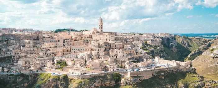 Matera é uma pequena jóia esculpida nas montanhas. O tempo parece ter parado nesta cidade da região de Basilicata, onde toda a paisagem circundante se assemelha a uma pintura. Matera é famosa pelos Sassi, as suas casas antigas esculpidas na rocha, que remontam aos tempos pré-históricos. Estas habitações foram restauradas e, atualmente, estão transformadas em hotéis, restaurantes e lojas, oferecendo aos visitantes uma experiência única de vida numa cidade antiga.