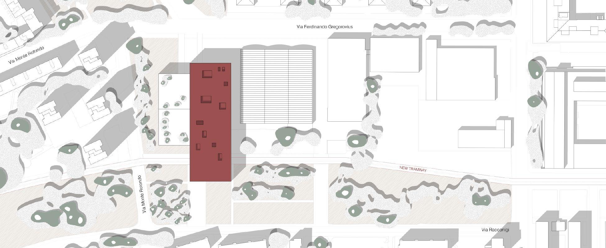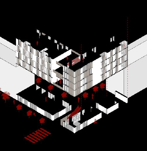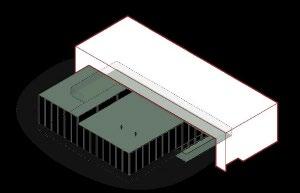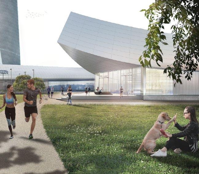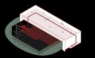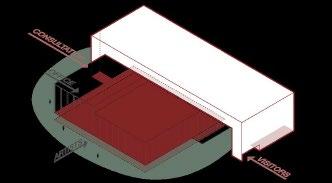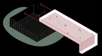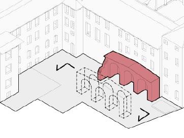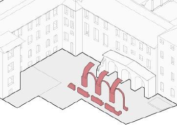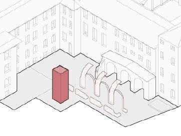 and serves as its new main façade. A parkfacing entrance welcomes visitors into a vertical museum showcasing in-house artists’ works and leads to a flexible horizontal space for exhibitions and conferences. This space connects to the second, thinner vertical volume, which houses a Memory space with consultation and multimedia rooms, enabling visitors to explore the archive’s contents without disrupting its core functions. These additions transform the Cittadella into an accessible and dynamic cultural landmark.