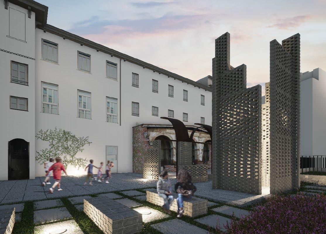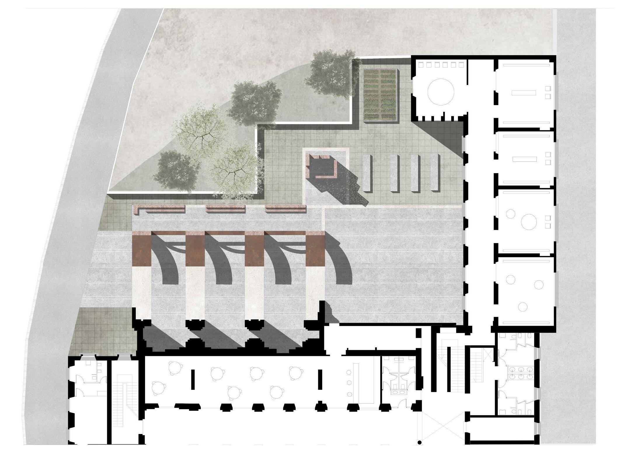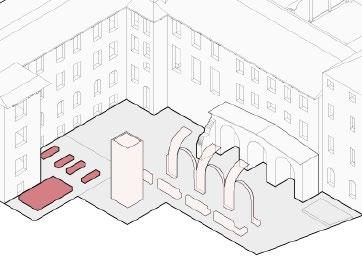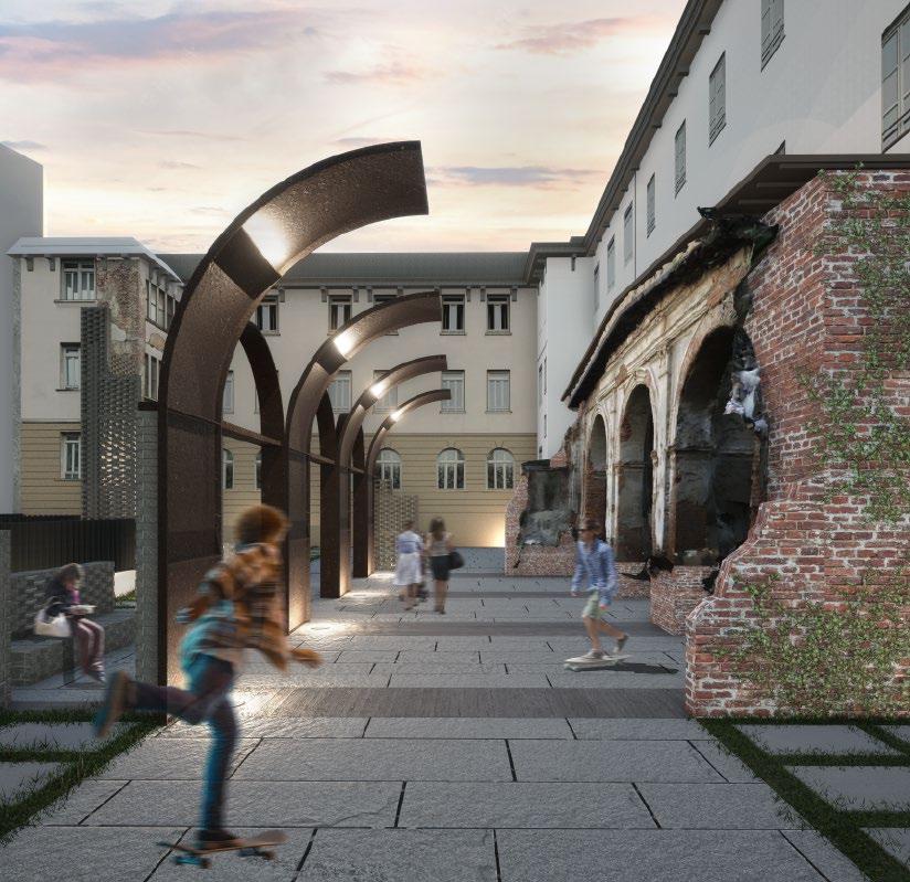 The Calchi Taeggi is among the last monastery complexes in central Milan. Currently housing a library, music school, and public offices, the complex has suffered neglect, necessitating a significant intervention. This project builds on its public vocation, aiming to restore it as a vital community space. A new square is introduced in the courtyard where the San Bernardino Church once stood, preserving its ruins while facilitating a rediscovery of its history. By emphasizing the symbols and traditions of the
