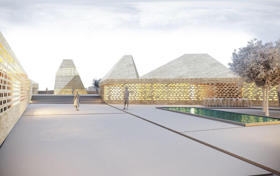 ancient communities tied to the site, the design physically and spiritually retraces the church’s original layout. New architectural elements such as arches, walls, pavements, and a tower reflect the church’s original volumes while engaging with the existing ruins in a contemporary way. As the ruins continue to deteriorate, the project seeks to ensure the memory of the site endures, designing the new interventions to embody its spiritual essence even after its physical remains fade.
